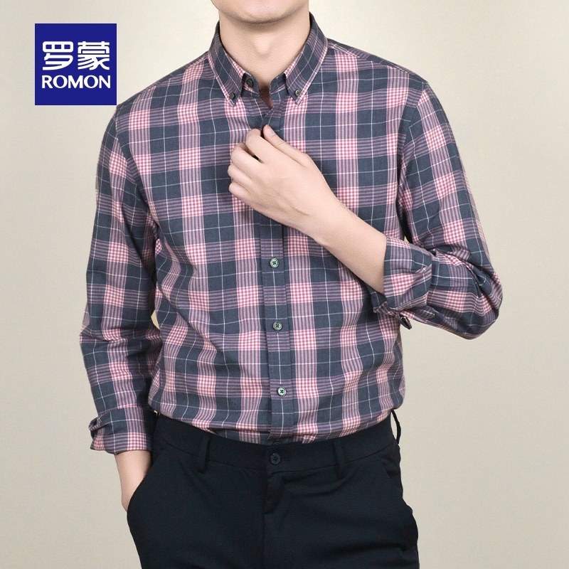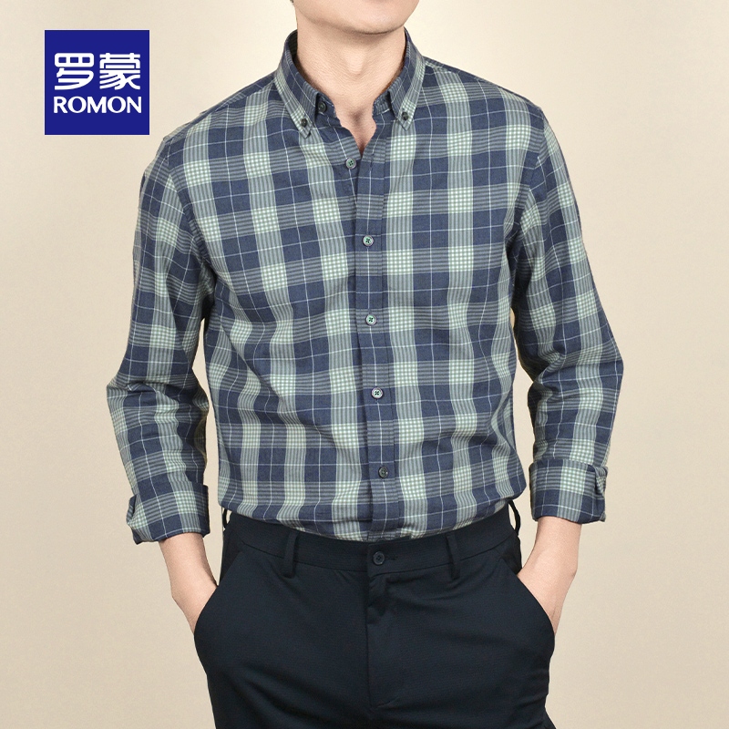 工装 长袖 衬衫 新款 罗蒙男士 2025秋季 商务格子衬衣 含天丝莱赛尔