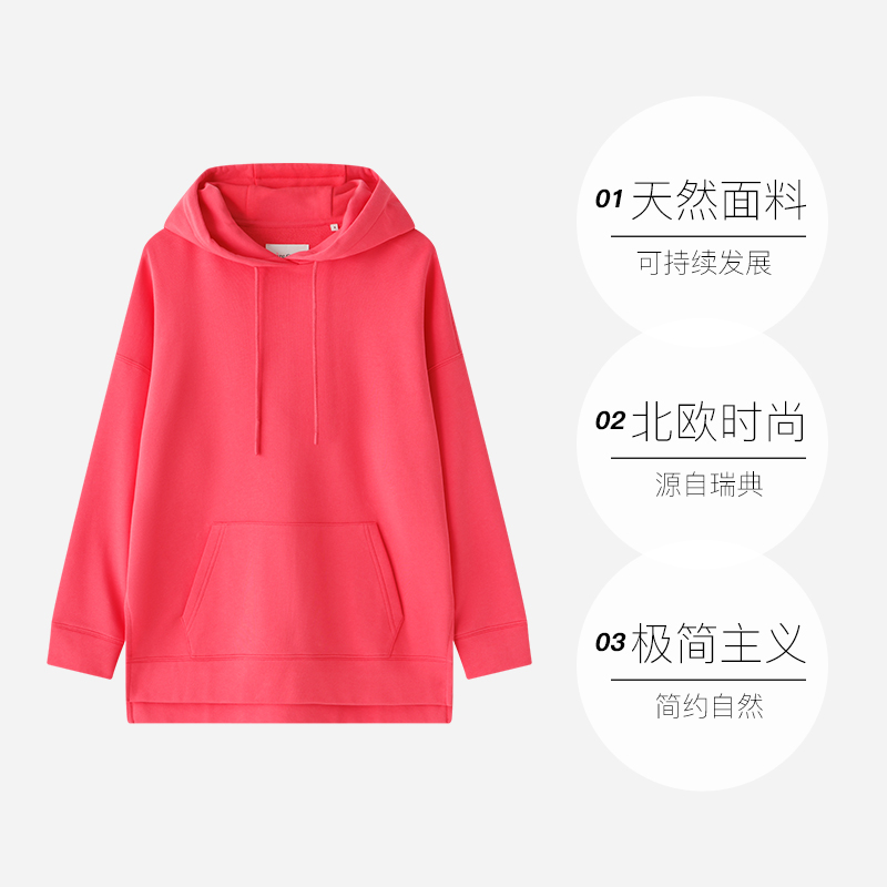 自营 新款 Marc Polo2025春季 后背印花纯棉连帽中长卫衣女