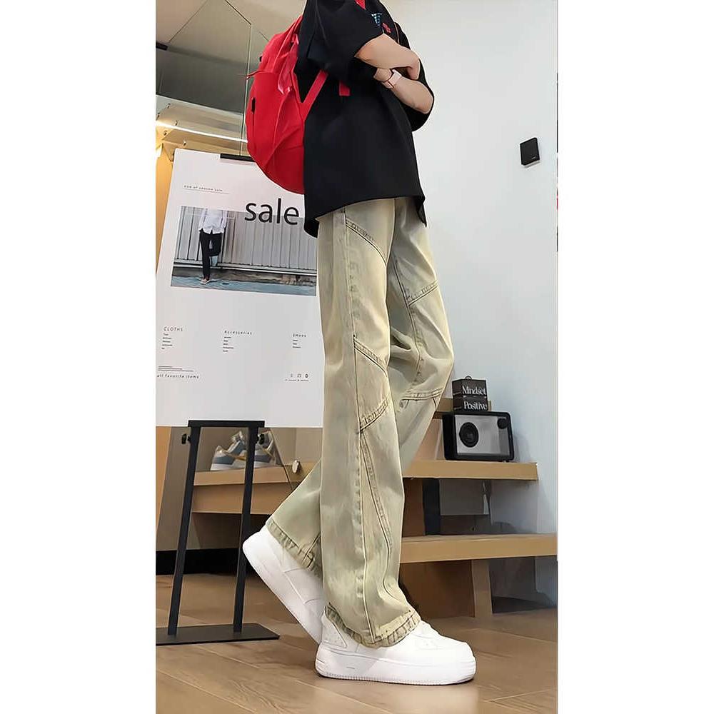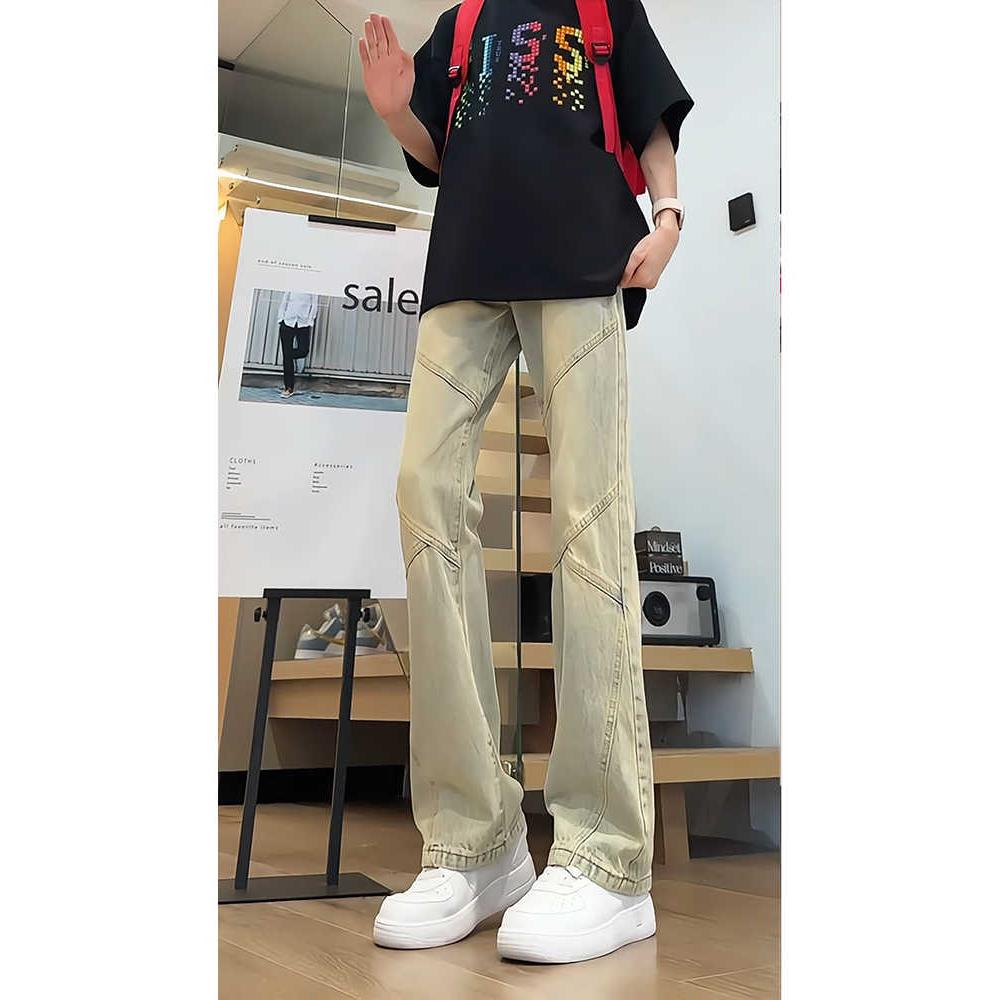男款 子提档vibe弯刀微喇裤 夏季 高街直筒显瘦裤 美式 小众拼接牛仔裤