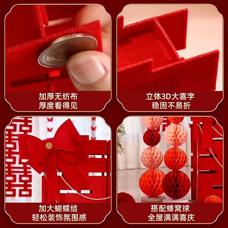 超大立体喜字落地摆件婚房布置套装 饰专用囍字拍照道具 客厅结婚装