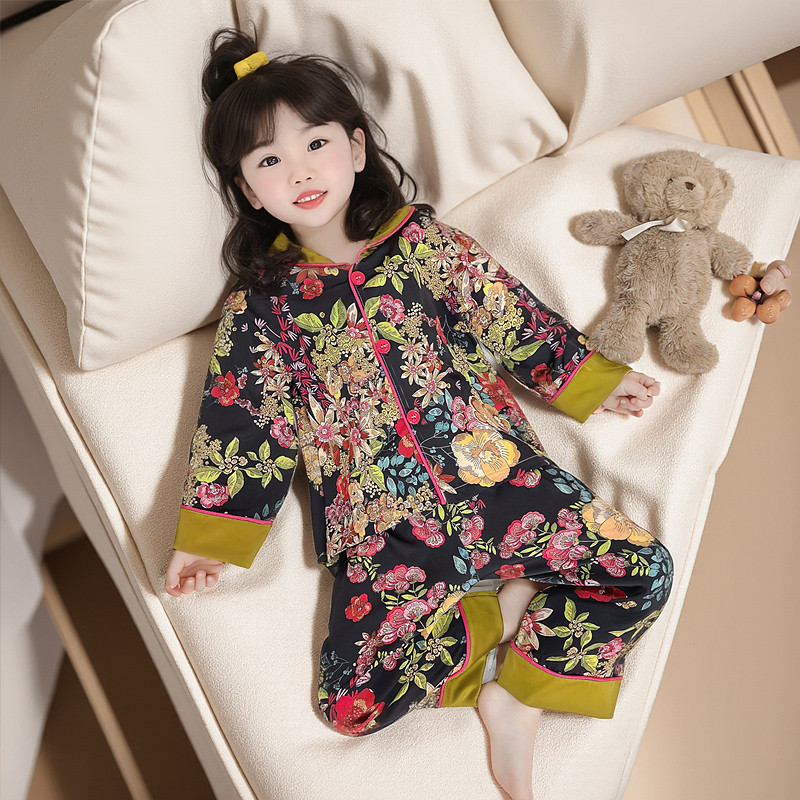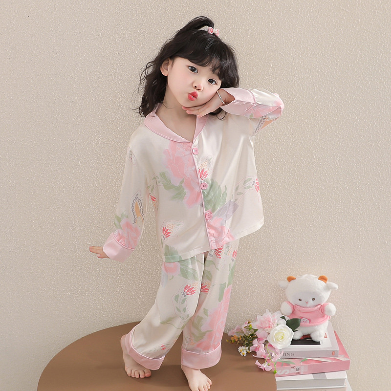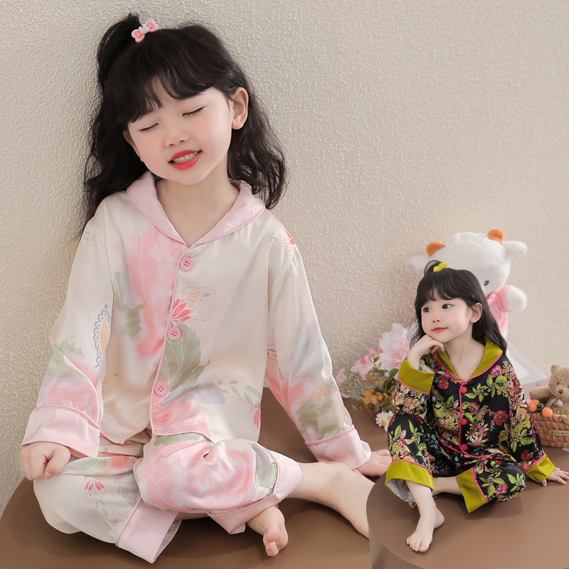 女宝宝长袖 套装 家居服 儿童洋气时髦冰丝开衫 女童睡衣2025春秋新款