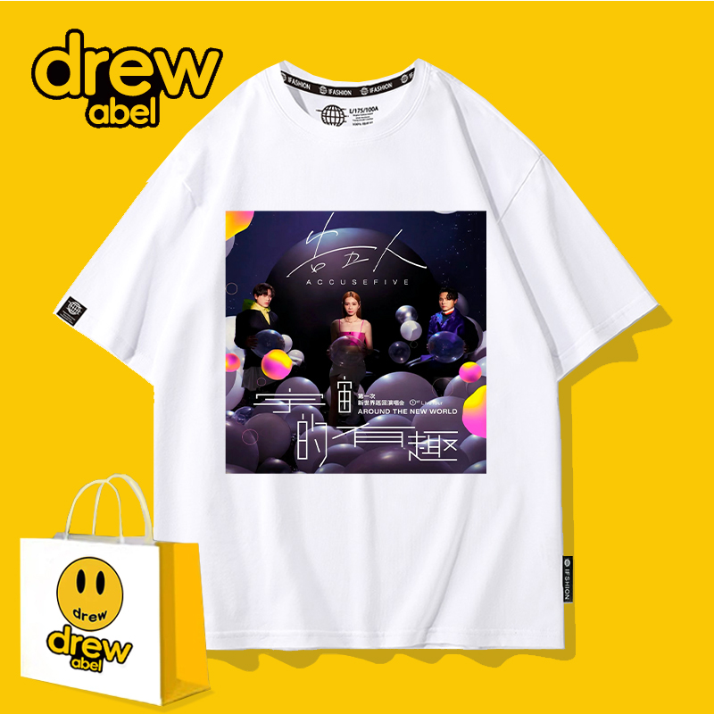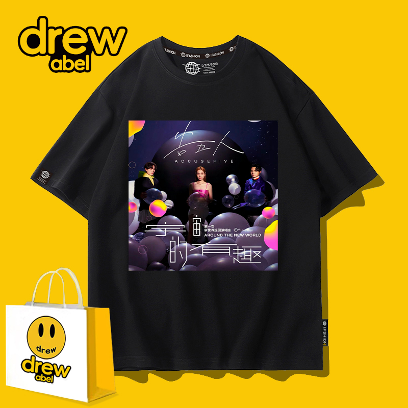 宇宙超有趣巡回演唱会应援衣服宽松 T恤男夏季 drew告五人同款 短袖