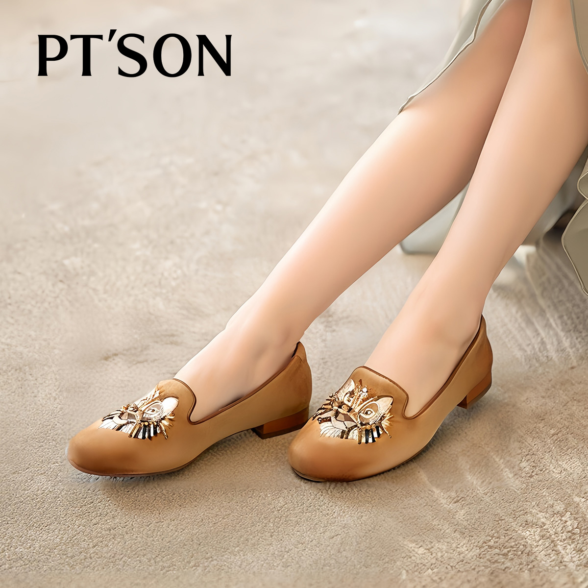 百田森国风刺绣中式 绒面平底鞋 单鞋 乐福鞋 子 女2025年新款 商场同款