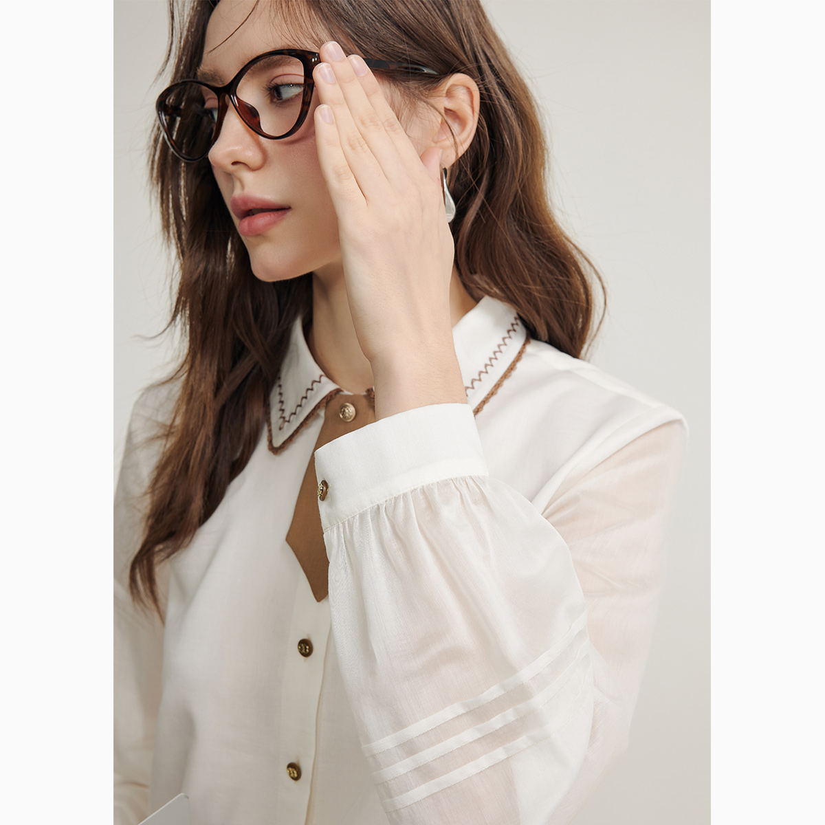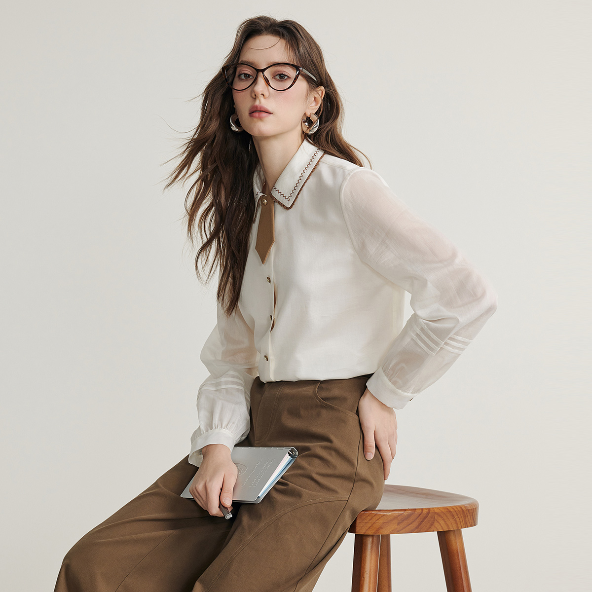 小个子长袖 KBNE莱赛尔白色衬衫 别致女装 法式 上衣 气质衬衣春秋新款