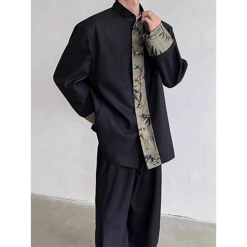 男套装 正装 订婚穿搭礼服高定戗驳领垫肩西服 山茶花刺绣西装 新中式