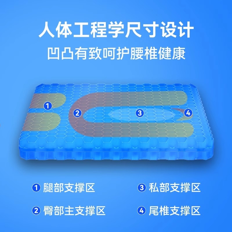 凝胶坐垫夏季 椅子久坐椅垫屁垫防屁股痛座垫蜂窝硅胶冰凉垫汽车