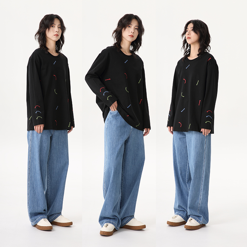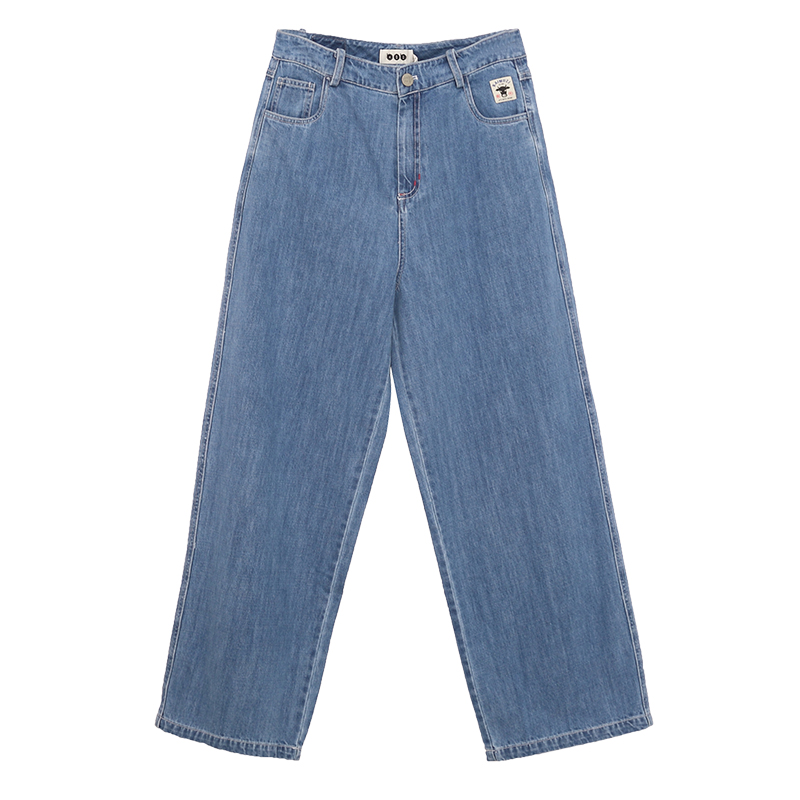 商场同款 高街阔腿裤 白目自牛仔裤 美式 拖地辣妹显瘦长裤 女春装