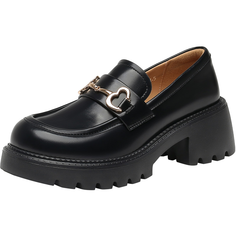 秋季 2025新款 坡跟增高鞋 黑色单鞋 大东厚底乐福鞋 英伦风小皮鞋 女款