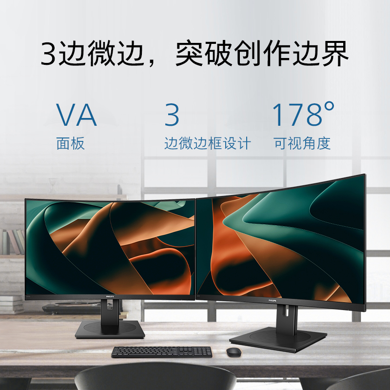 飞利浦内置音箱电脑显示器27 32英寸24曲面屏2K144Hz商用旋转升降