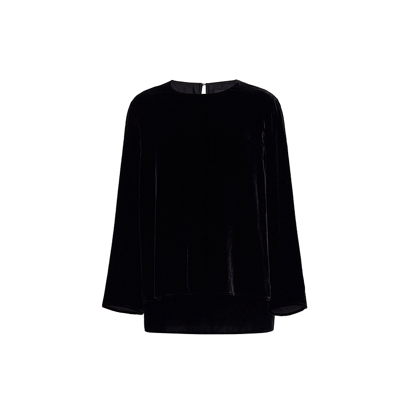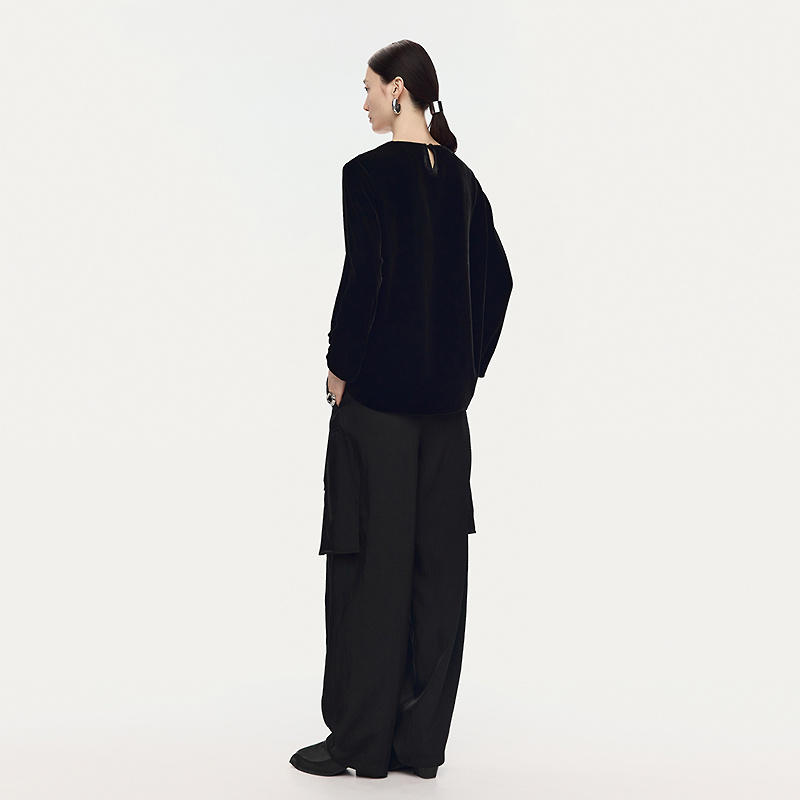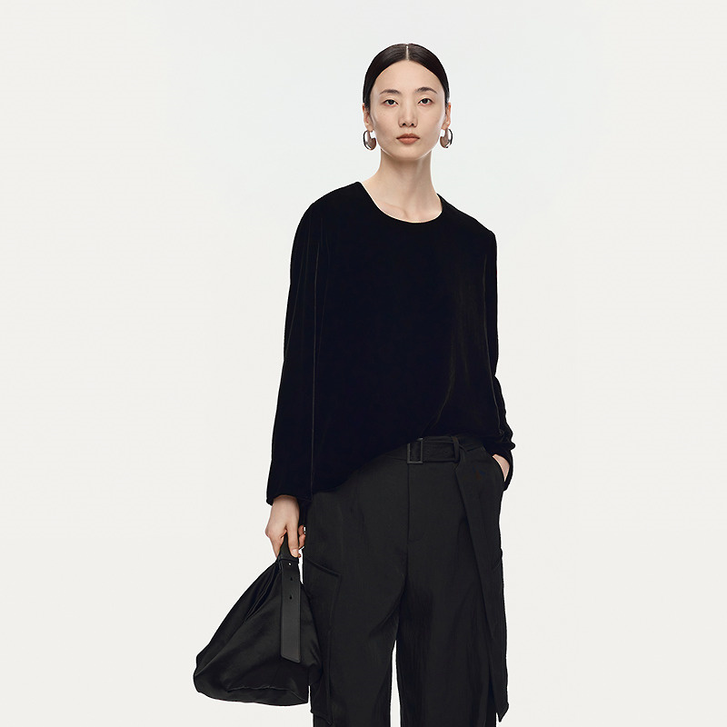 圆领长袖 新款 AUM噢姆2025年冬季 宽松黑色丝绒上衣女 商场同款