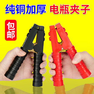 汽车电瓶夹子搭火线纯铜加厚强力鳄鱼夹蓄电池搭电连接线卡子小号