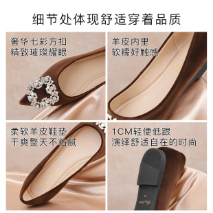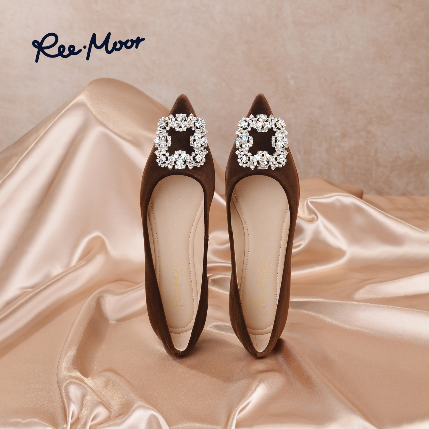 软底尖头平底单鞋 REEMOOR2025秋季 水钻方扣蛋卷鞋 法式 女 新款