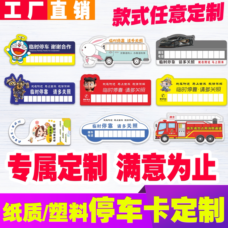 牌 临时停车电话号码 定制挪车牌男女车内移车卡 无痕贴 简约