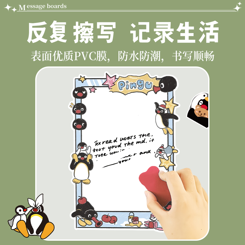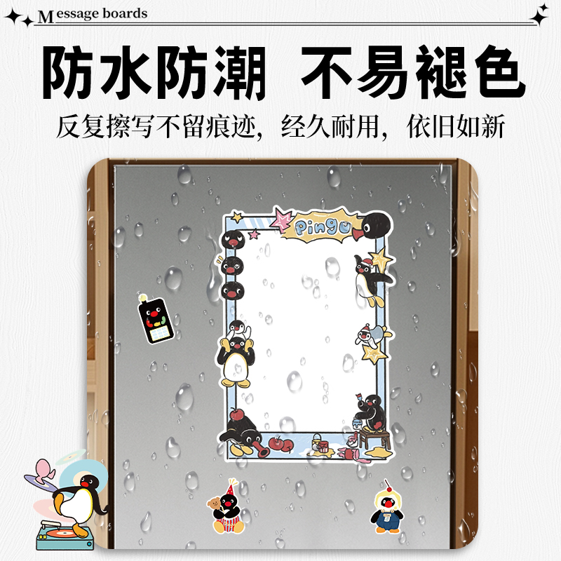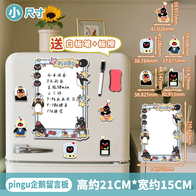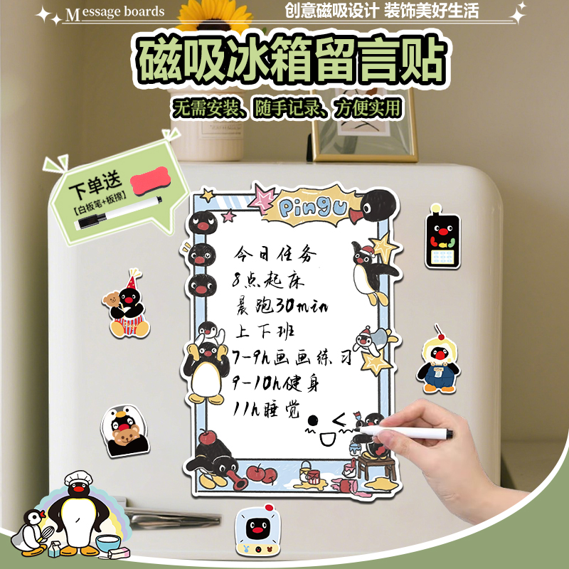 pingu企鹅磁吸留言板冰箱贴入户门可擦写备忘录提示计划可爱装 饰