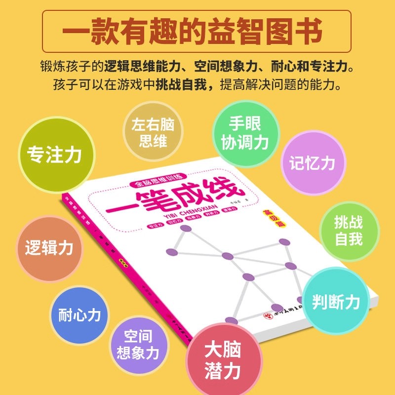 12岁儿童一笔成线专注力训练全脑思维开发逻辑智力开发益智游戏书家长孩子玩一笔连完所有点图案闯关游戏玩具迷宫认知能力左右脑