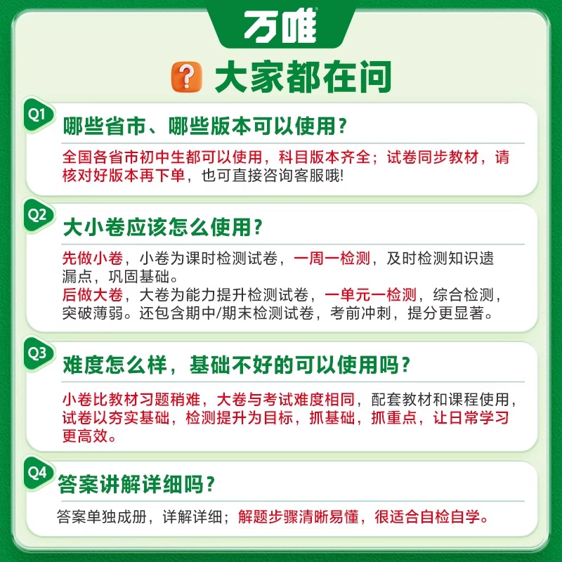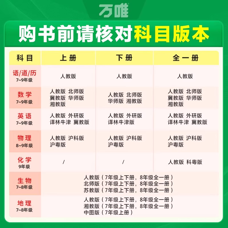 2026万唯中考大小卷七年级八年级九年级上册语文数学英语物理化学政历地人教版 训练同步