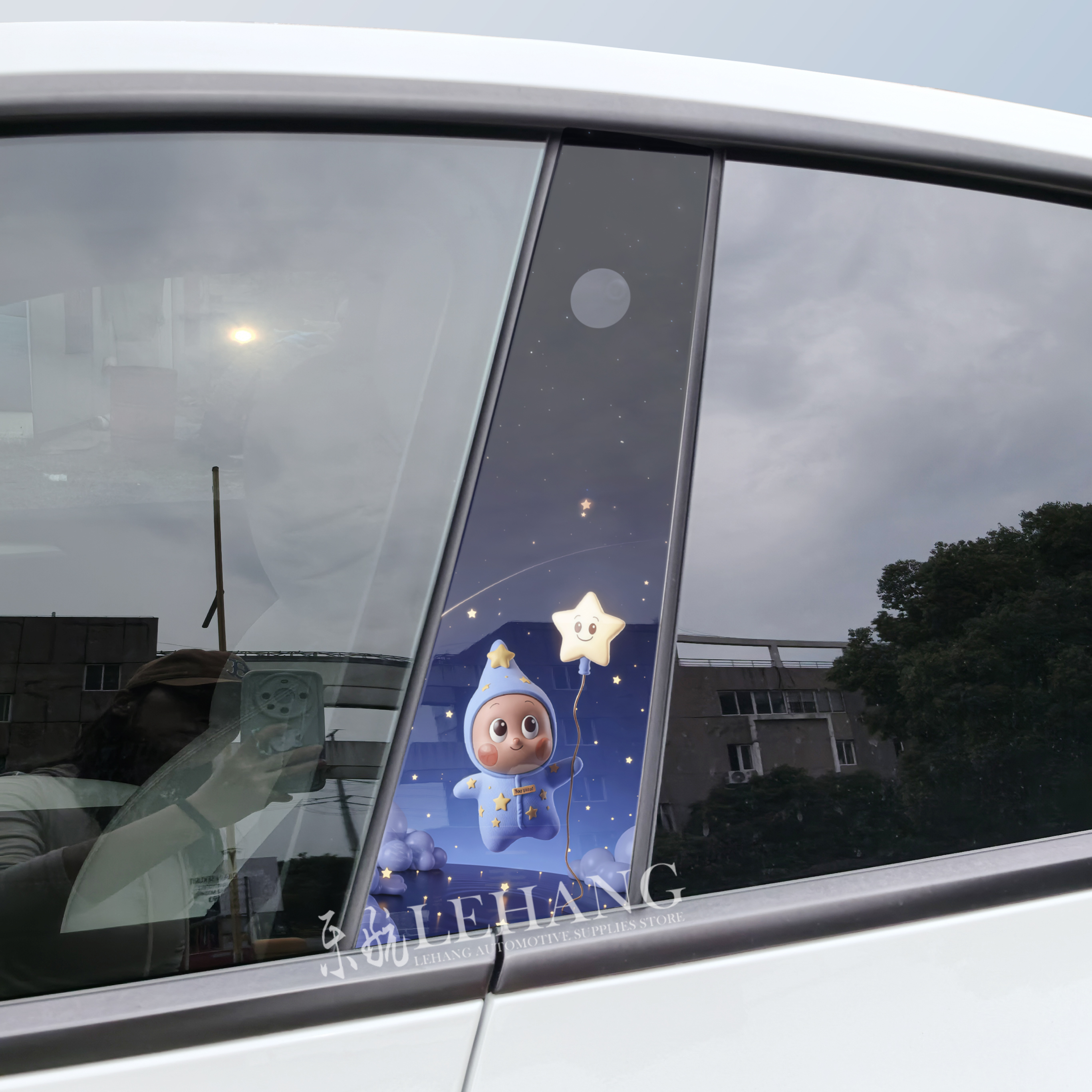 适用特斯拉MODEL3 饰保护膜亮条贴片 Y星星人B柱彩绘贴汽车中柱装