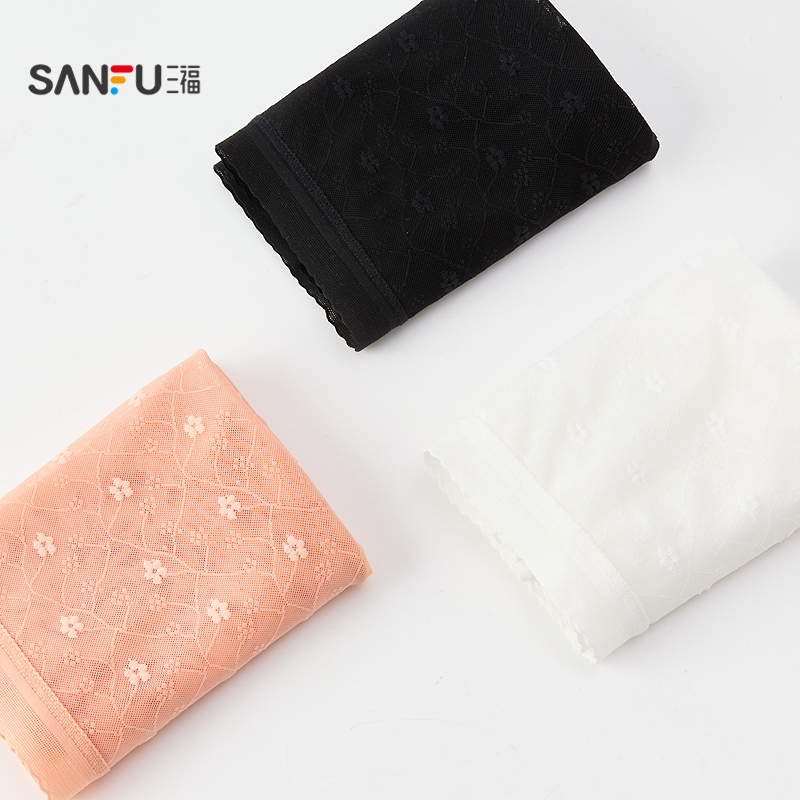 女蕾丝刺绣裆舒适贴身无束缚中腰平角裤 爱慕内裤 2件包 免定金