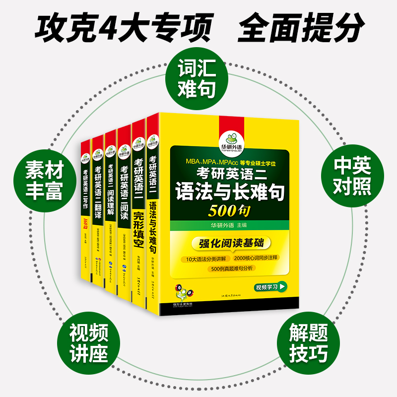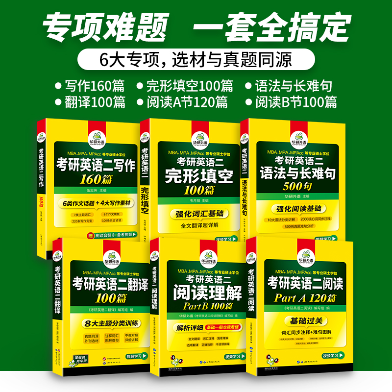 华研外语2026考研英语二阅读理解语法与长难句完形填空翻译写作文专项训练书籍教材复习资料搭历年真题词汇单词法硕英语一新题型