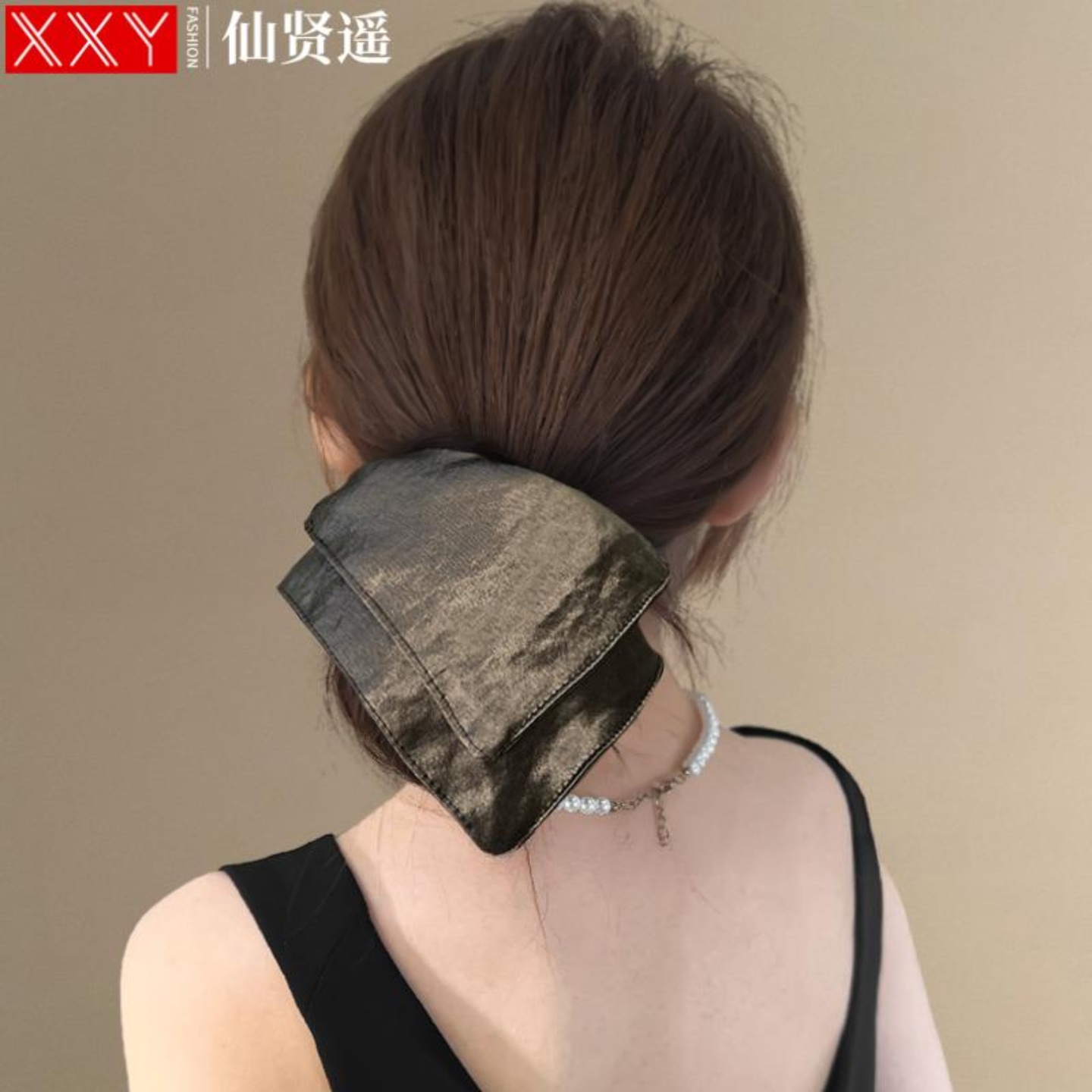 冰咖啡棕 复古丝光缎面方巾发圈气质拎环扎头发头绳旅行头花 法式