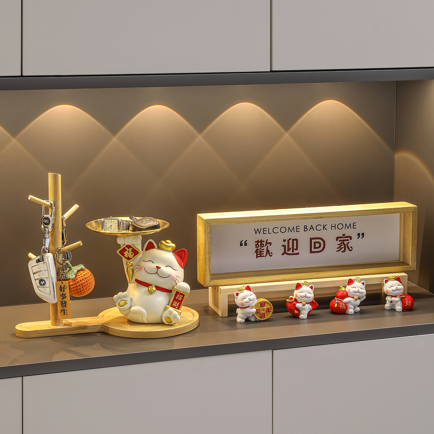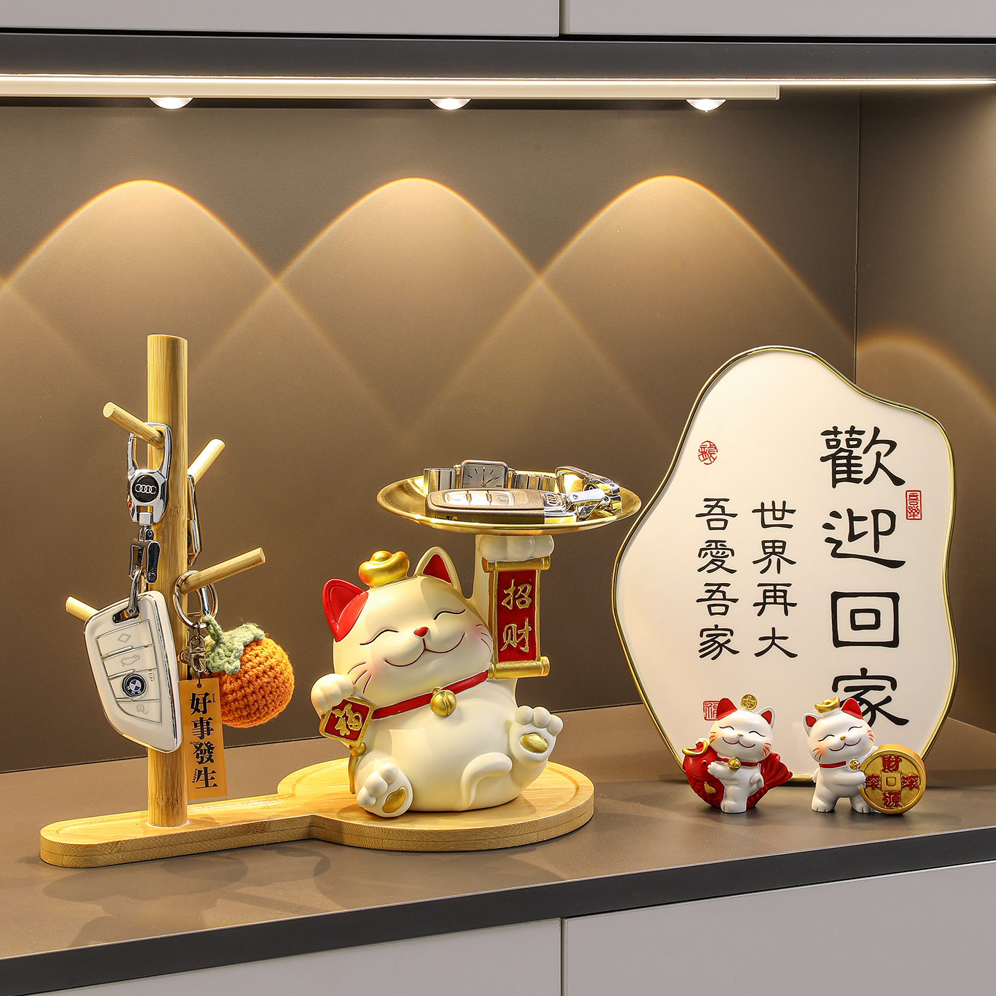 创意招财猫钥匙收纳玄关摆件入户鞋 饰品新居入宅搬家礼物 柜客厅装