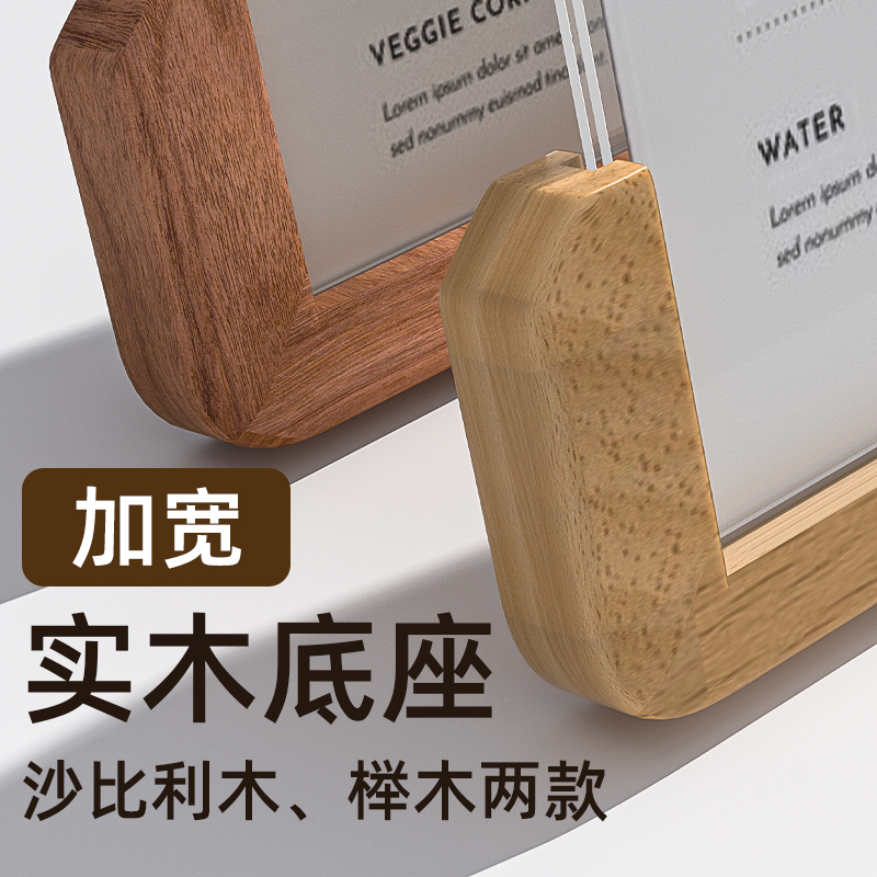 亚克力木质台牌A4榉木菜单桌牌A5胡桃木U型展示牌台卡架二维码 支付牌奶茶店商品价格牌价目表立牌 收银牌钱码