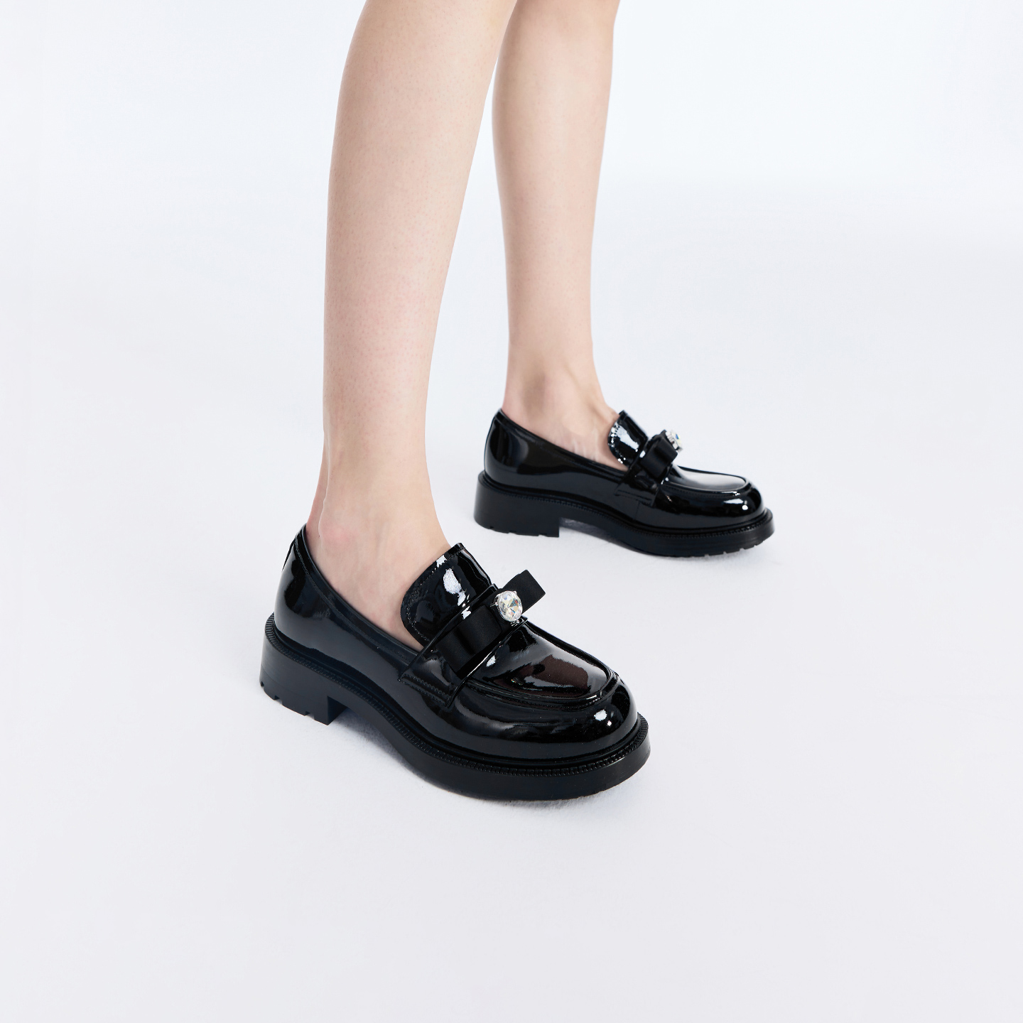 舒适一脚蹬女单鞋 诺贝达秋季 蝴蝶结水钻小皮鞋 乐福鞋 RS266102 新品