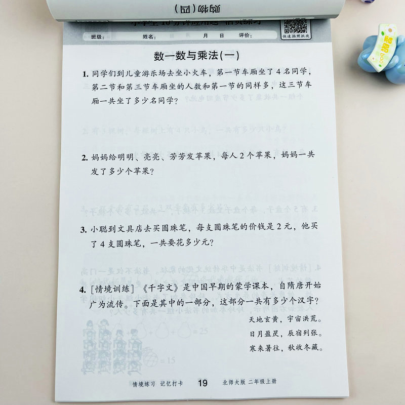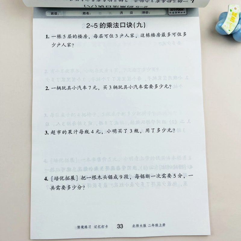 二年级上册数学应用题卡活页练习纸北师版 北师大版 课本同步练习册每天10分钟计算题专项训练表内乘法口诀表内除法 随堂帮