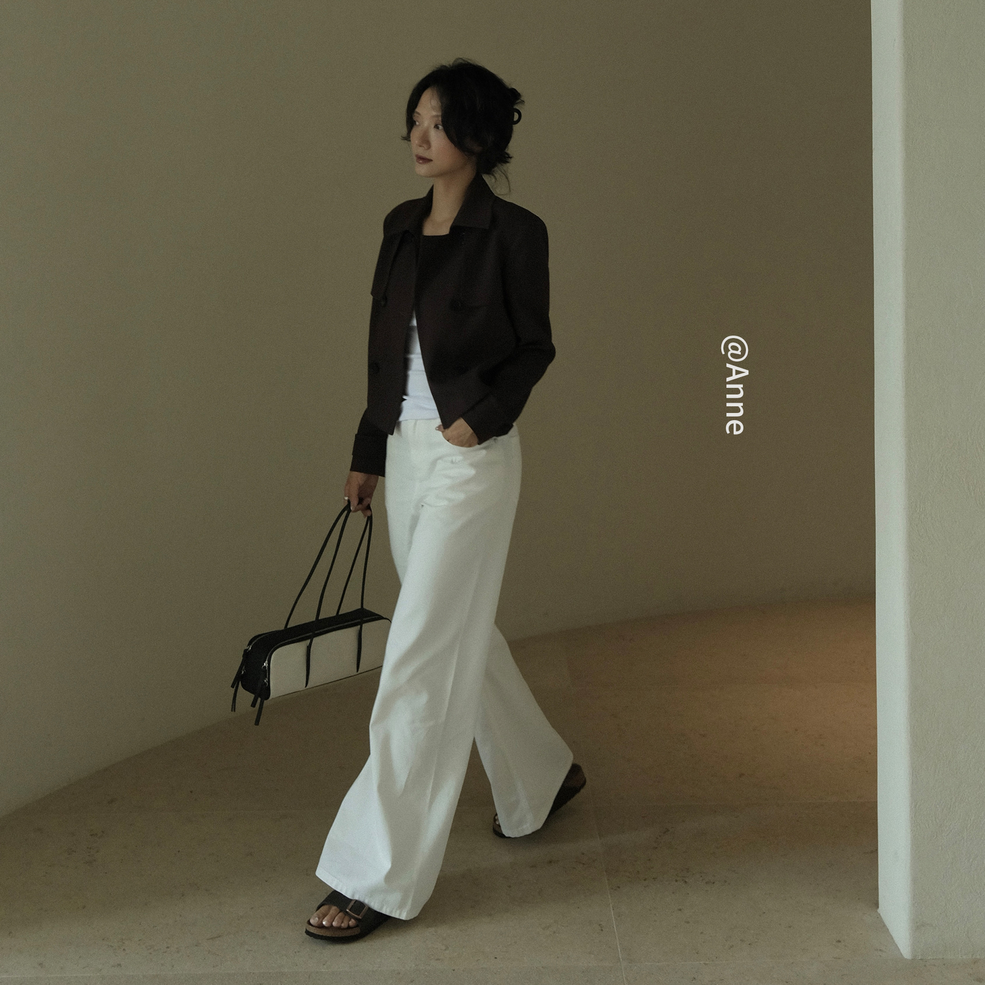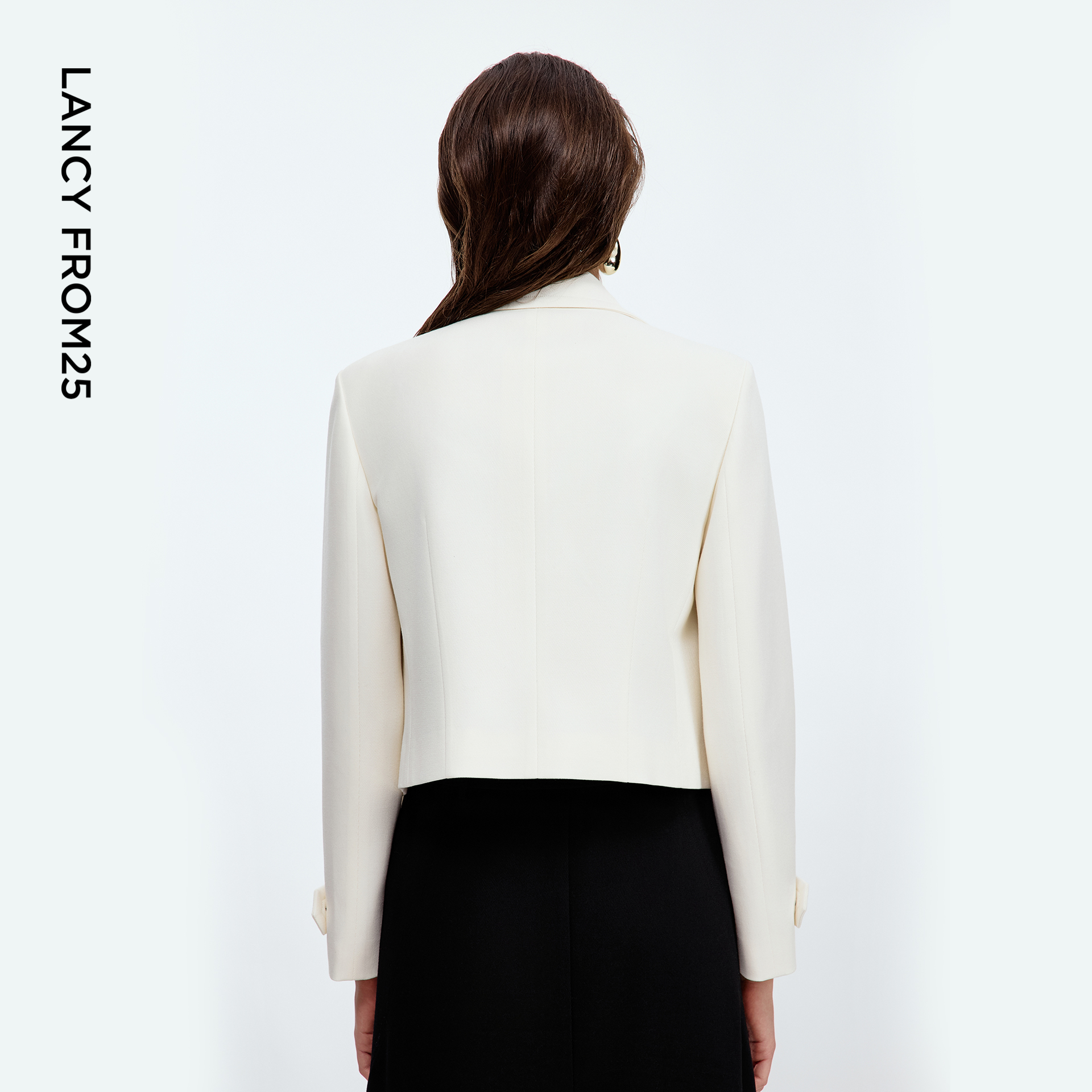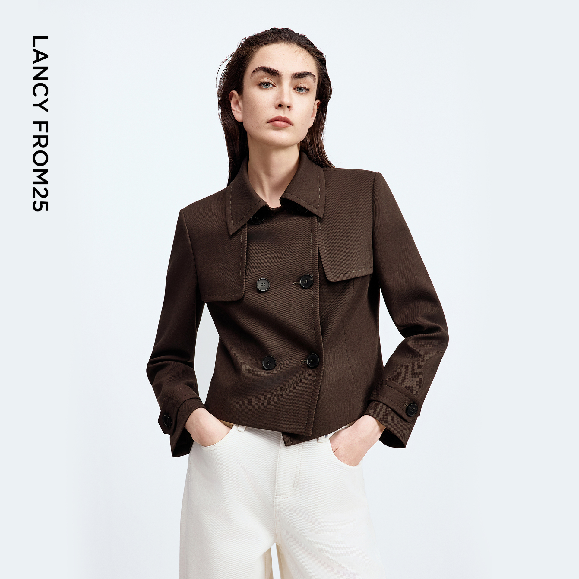 新款 朗姿复古短款 箱型外套英伦风气质商务双排扣上衣2025年秋季