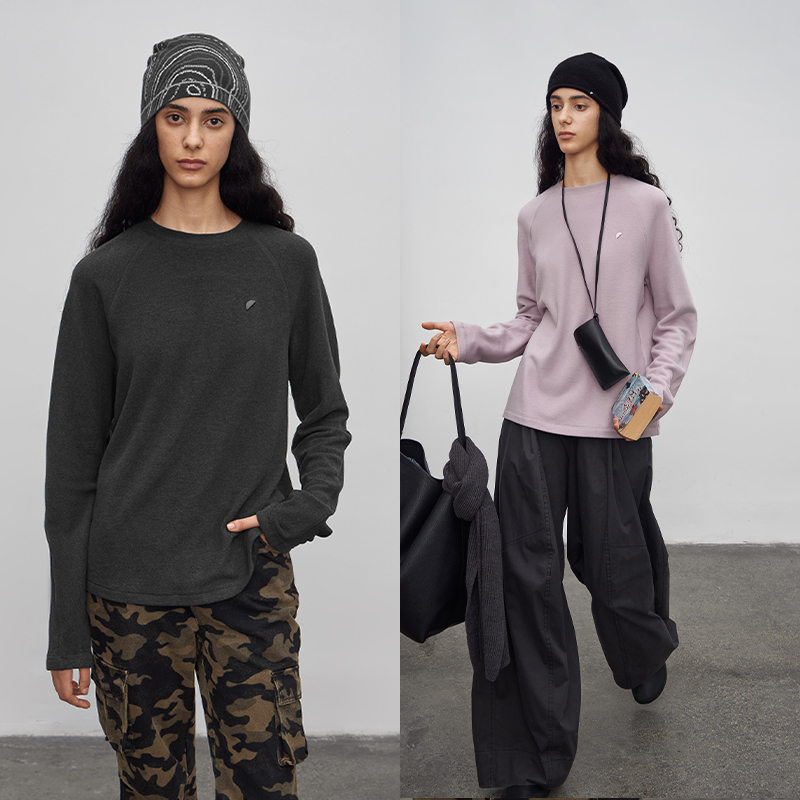 型宽松休闲长袖 半圆原创女装 基础版 2025秋季 圆领T恤女两色 运动