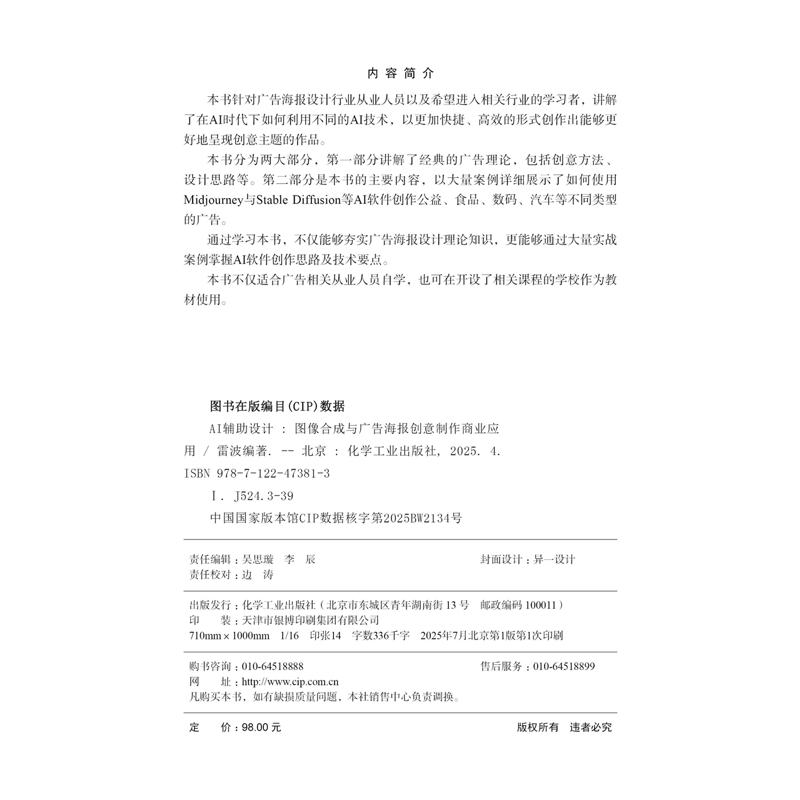 社新华书店正版 AI辅助设计:图像合成与广告海报创意制作商业应用雷波 编著计算机控制仿真与人工智能化学工业出版