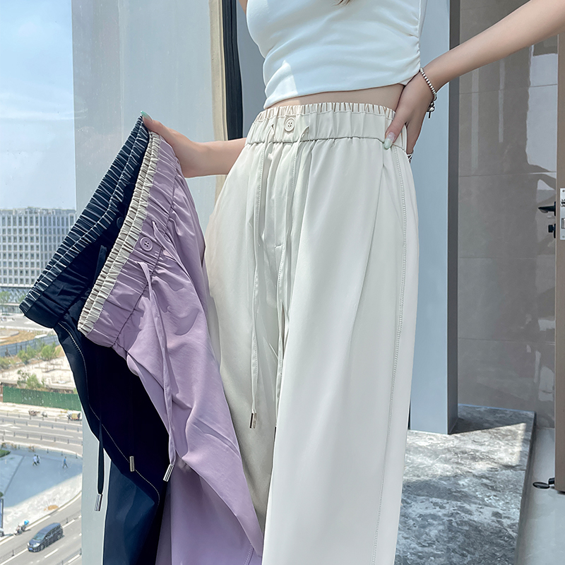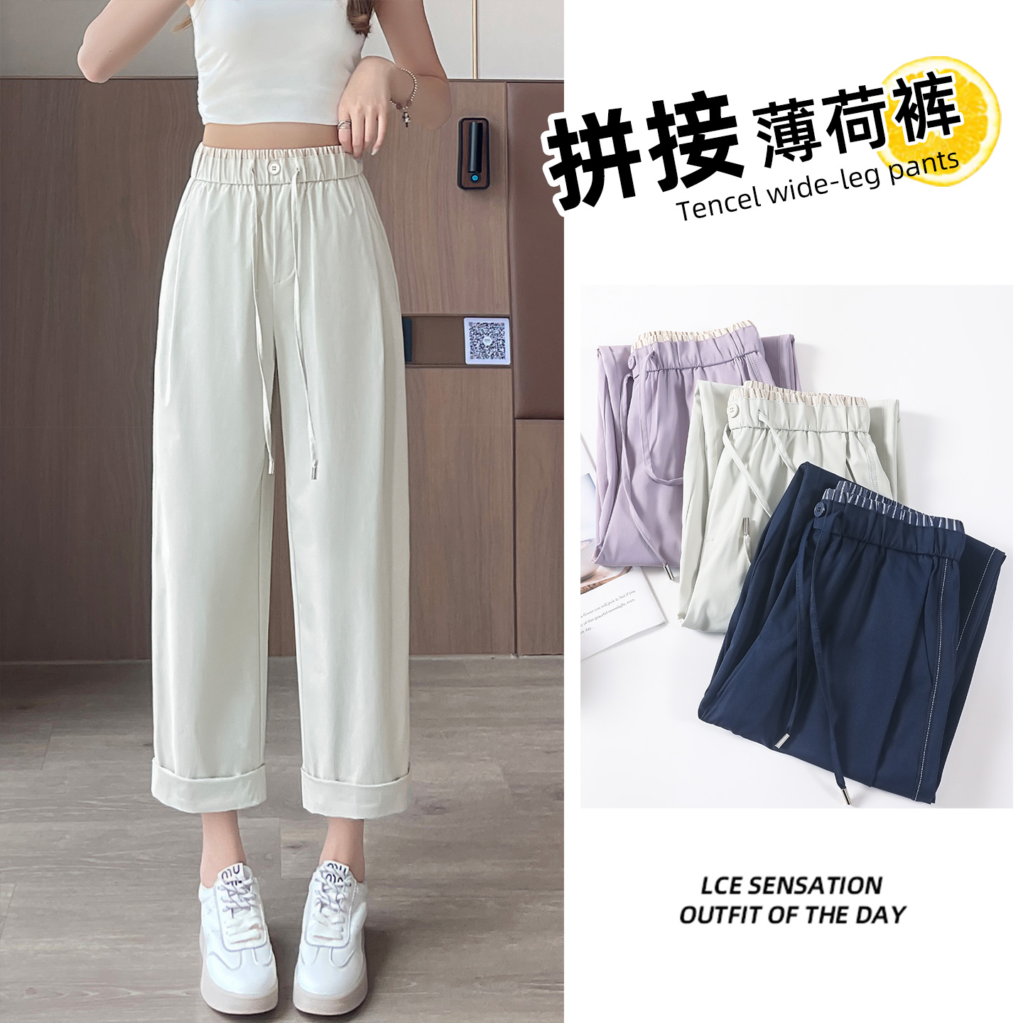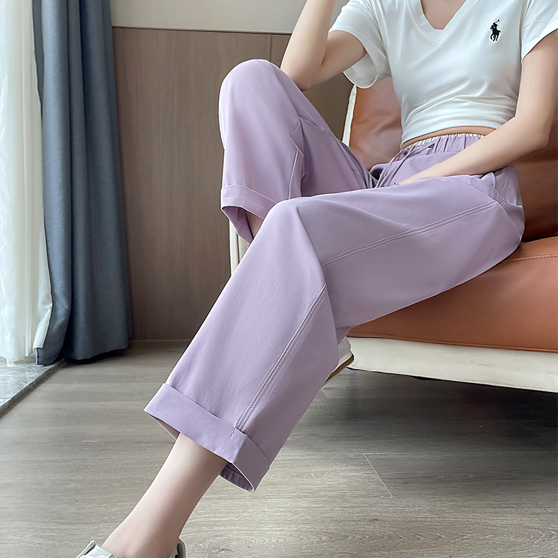 2025新款 薄款 窄版 高腰显瘦直筒裤 紫色卷边哈伦裤 九分休闲裤 女夏季