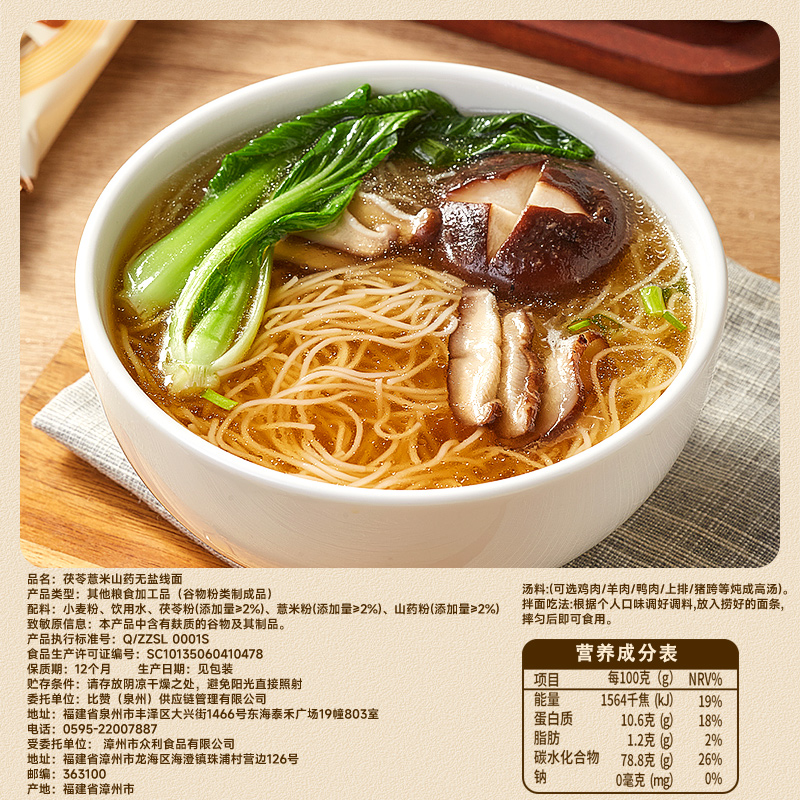比比赞无盐线面条福建特产茯苓薏米山药挂面线独立包装 速食整箱批