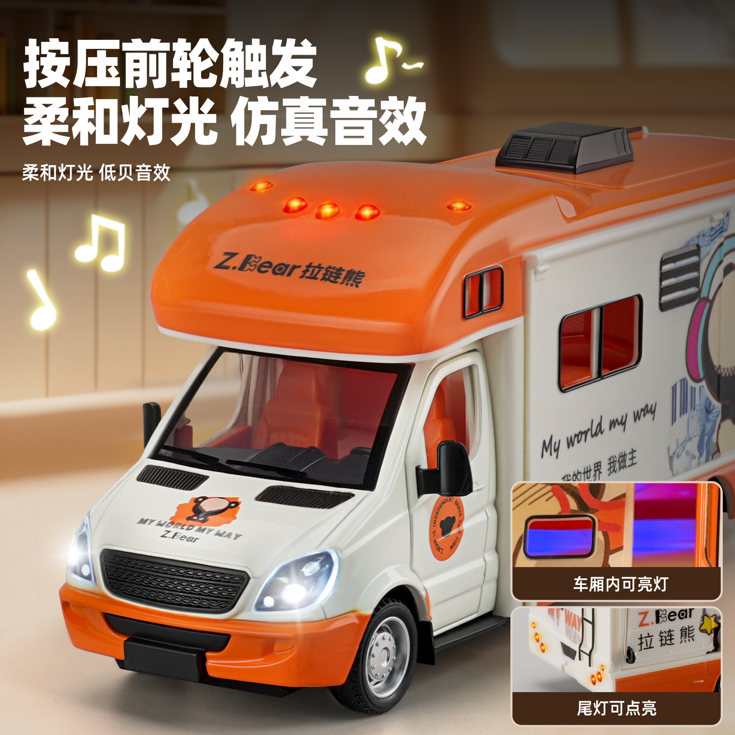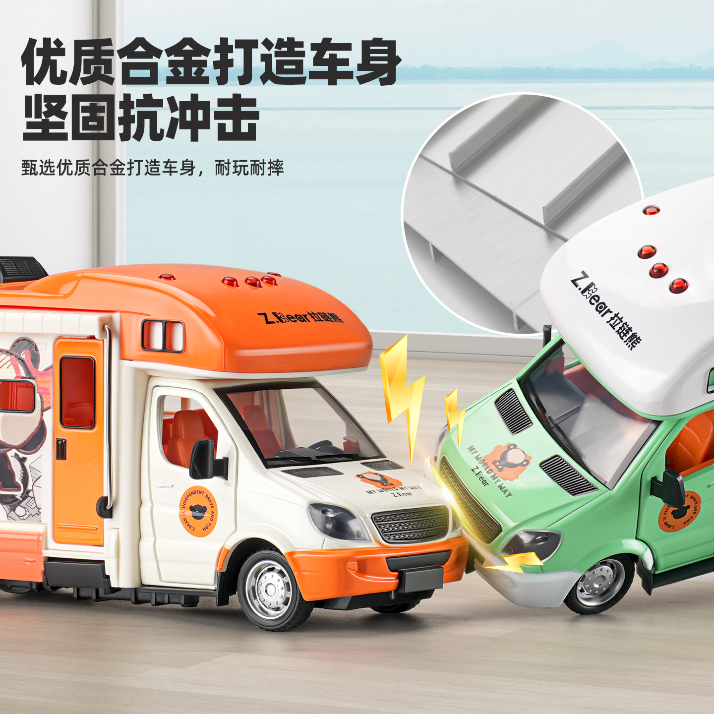 儿童房车玩具车大号合金旅行露营车模型男孩玩具小汽车敞篷拉链熊