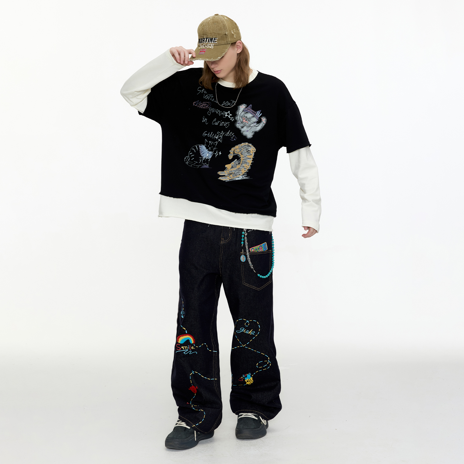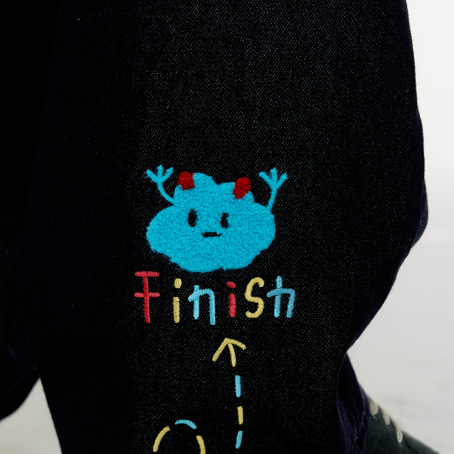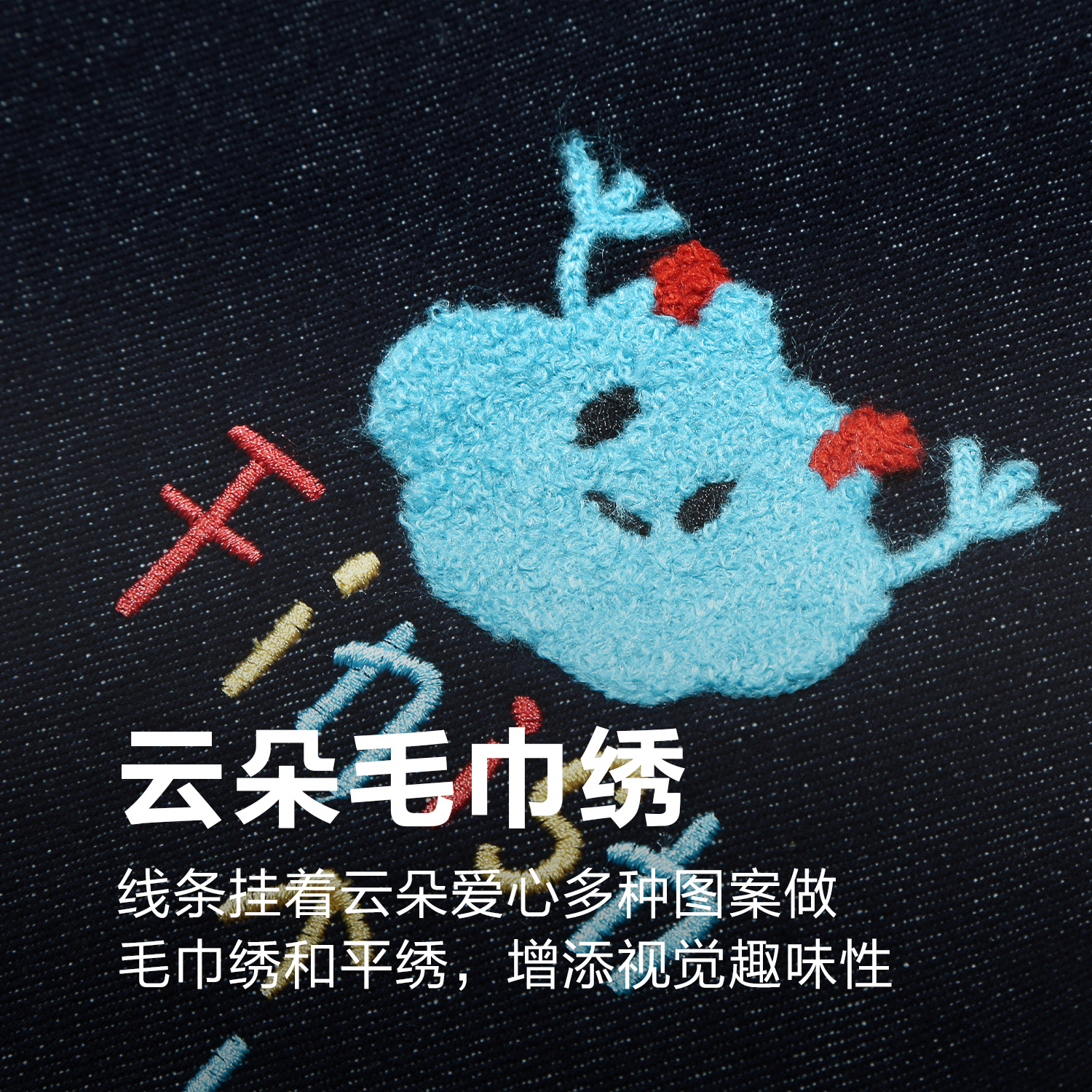高腰显瘦阔腿直筒长裤 小熊刺绣蝴蝶结浅蓝色牛仔裤 女春秋2025新款