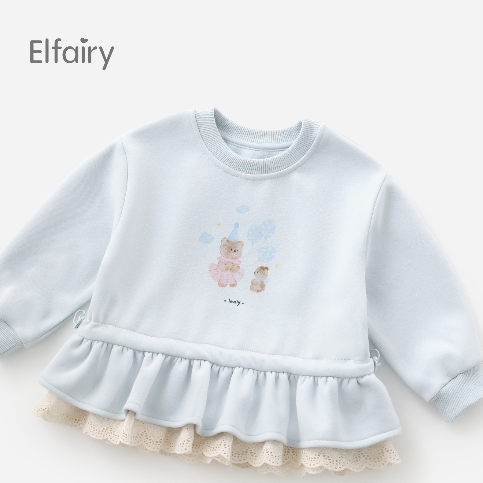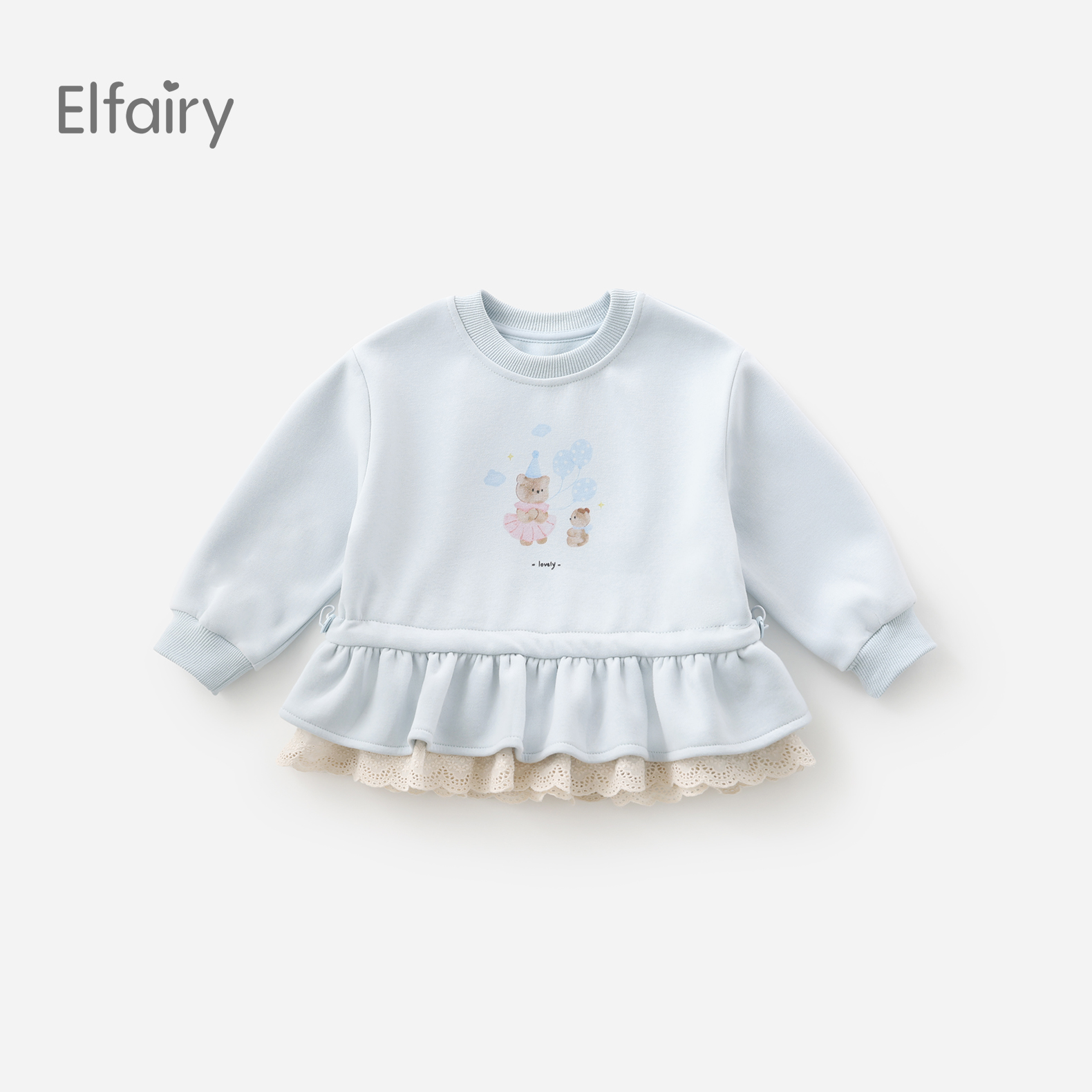 T恤小童衣服清新蓝 宝宝长袖 Elfairy儿童卫衣女童秋装 上衣2025新款