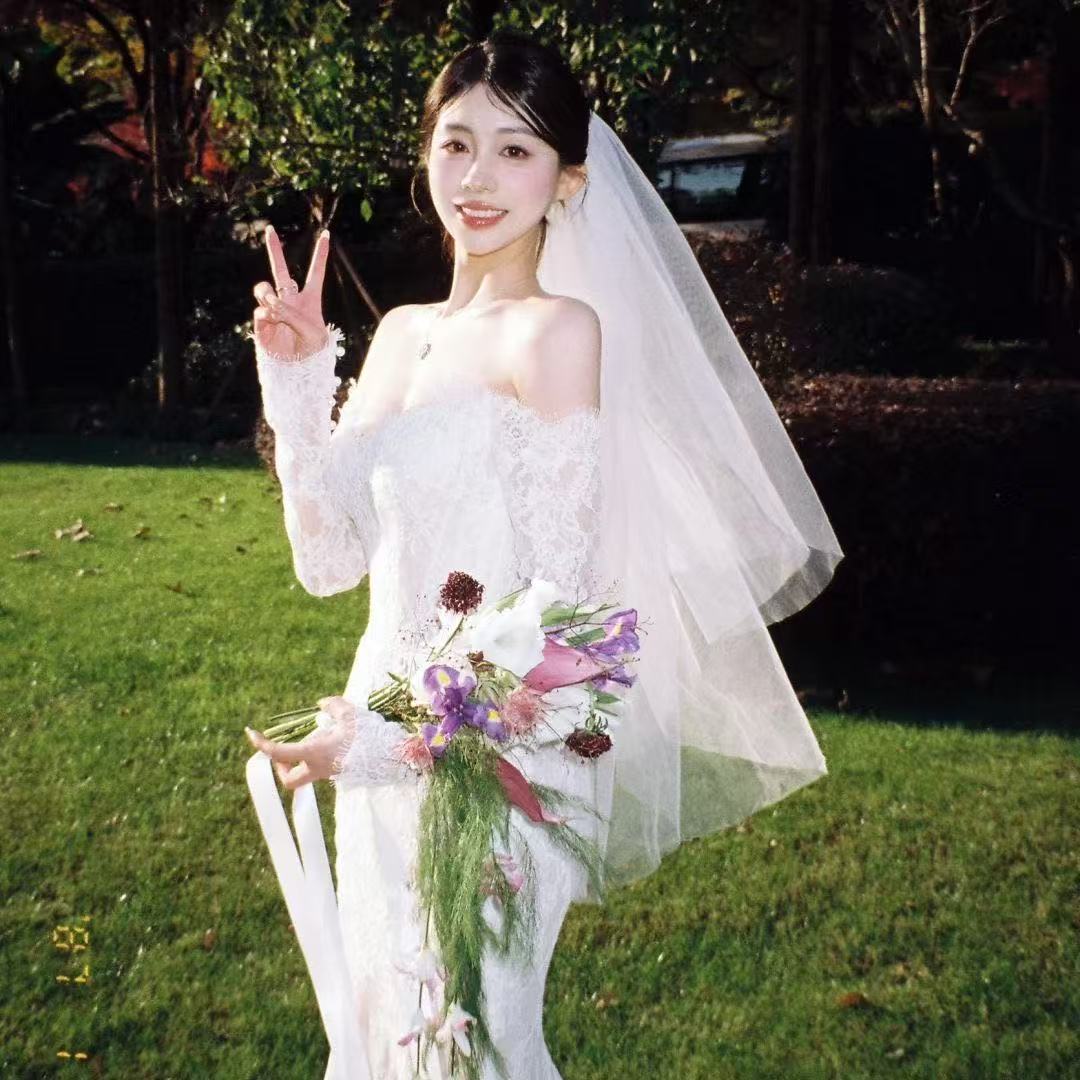 新娘求婚头纱超仙领证结婚短款 头饰婚纱蓬蓬登记白色拍照道具蝴蝶