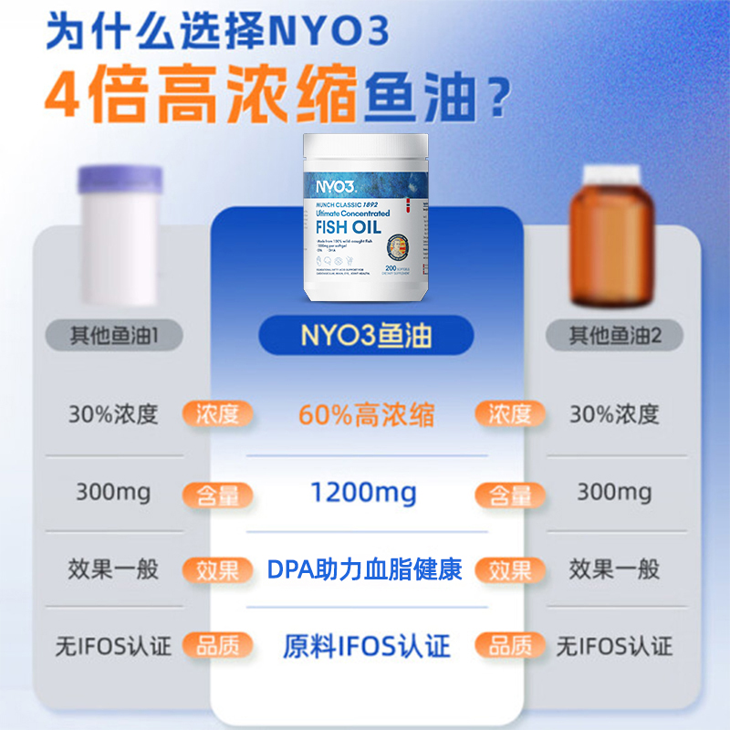 NYO3挪威进口深海鱼油omega3胶囊成人1200mg高含量200粒 自营