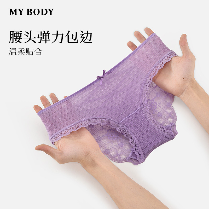 藤蔓棉质底裆性感蕾丝中腰平角裤 免定金 女花 爱慕内裤 3件包