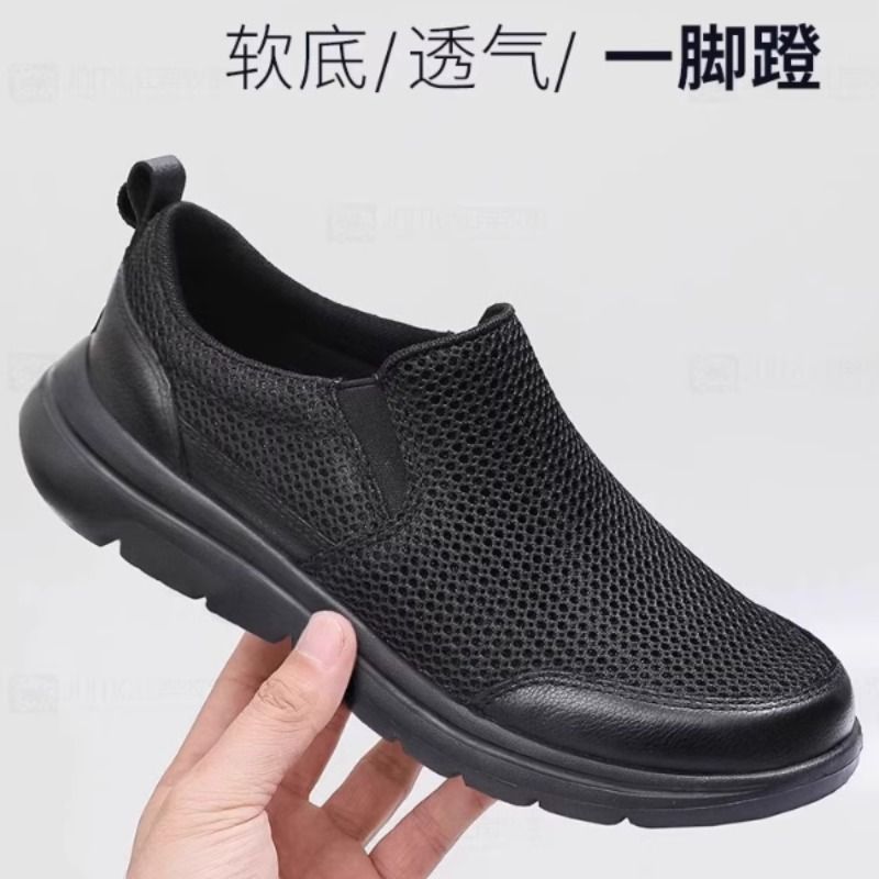 爸爸鞋 防滑一脚蹬男鞋 透气舒适休闲网面中老年老人鞋 镂空网鞋 夏季