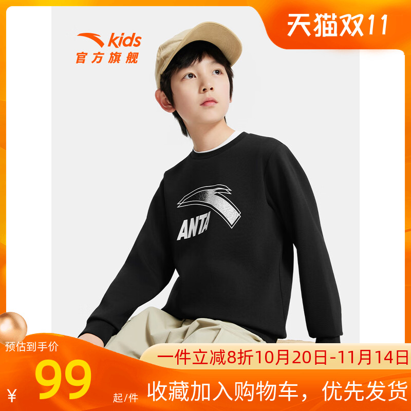套头衫 安踏童装 小学生长袖 新款 运动休闲上衣 儿童卫衣男童2025秋季