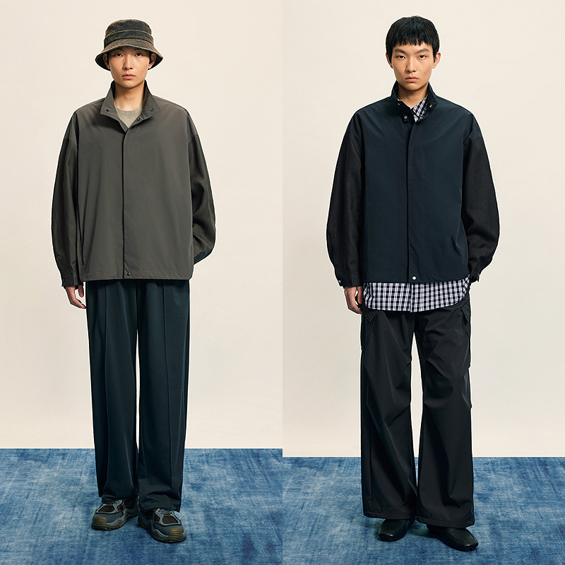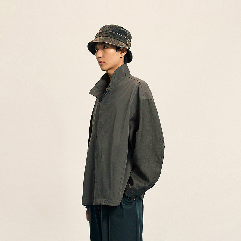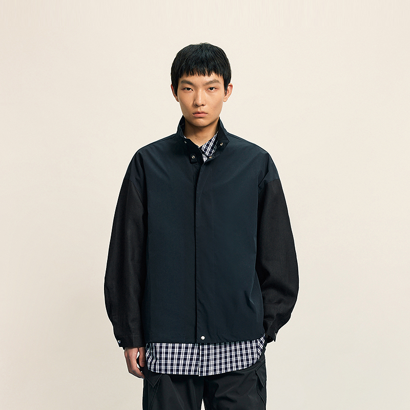 江南先生NewJNXS美式 复古透气立领撞色拼接夹克春秋男女宽松外套