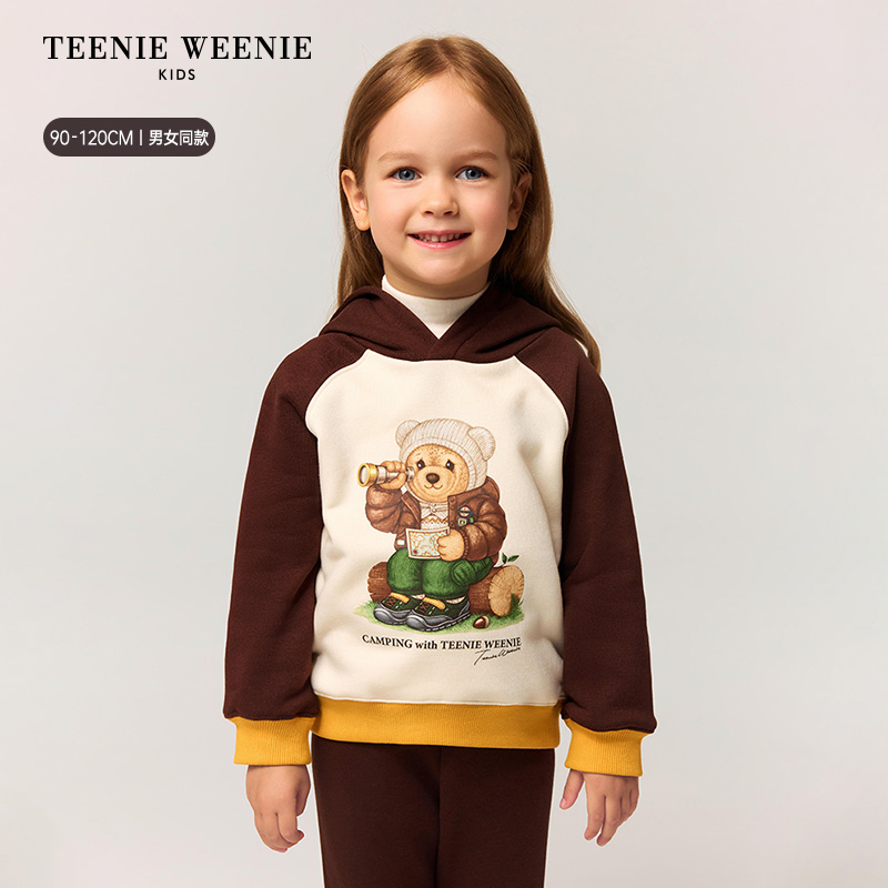 TeenieWeenie 25新秋冬男女宝加绒油画小熊印花连帽卫衣 Kids童装