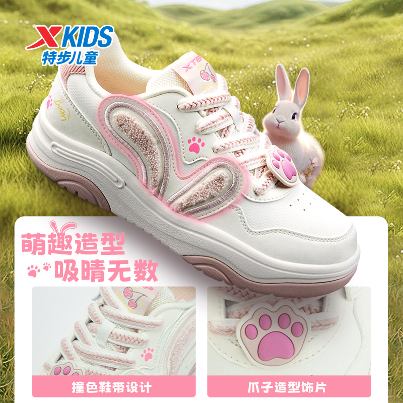 女童防滑耐磨中大童萌趣软底休闲鞋 特步童鞋 新款 秋季 儿童运动板鞋