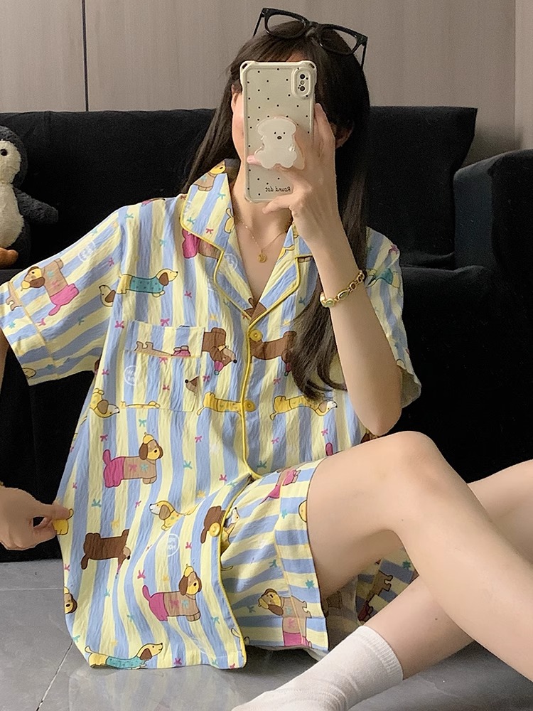 短袖 2025新款 长袖 家居服女款 高学生颜值腊肠犬胸垫一体睡衣 春秋款