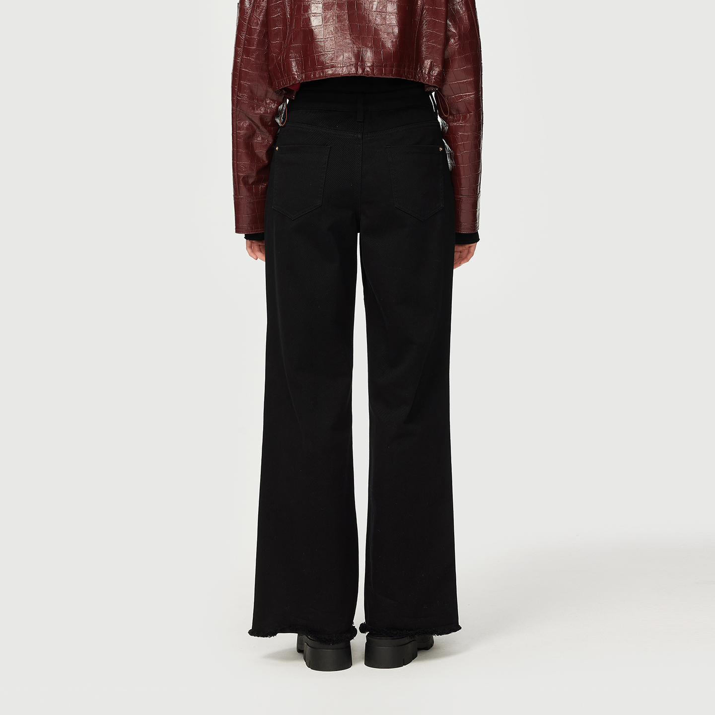 微喇休闲裤 CNC女装 女复古气质通勤宽松毛边阔腿长裤 大牌直降