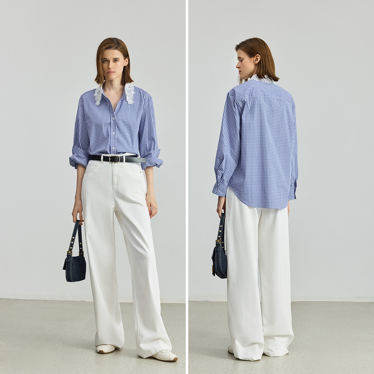 牛津纺刺绣衬衣易打理打底衫 热风女士白色长袖 新款 2025年秋季 衬衫