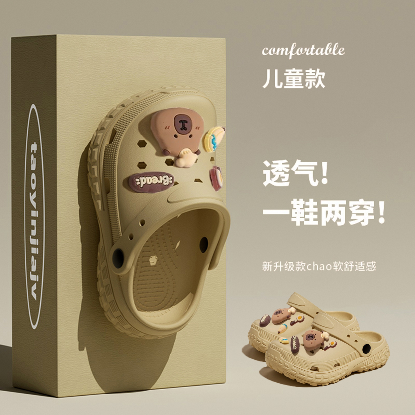 外穿防滑亲子宝宝小孩凉拖鞋 2025新款 男童夏季 卡皮巴拉儿童洞洞鞋