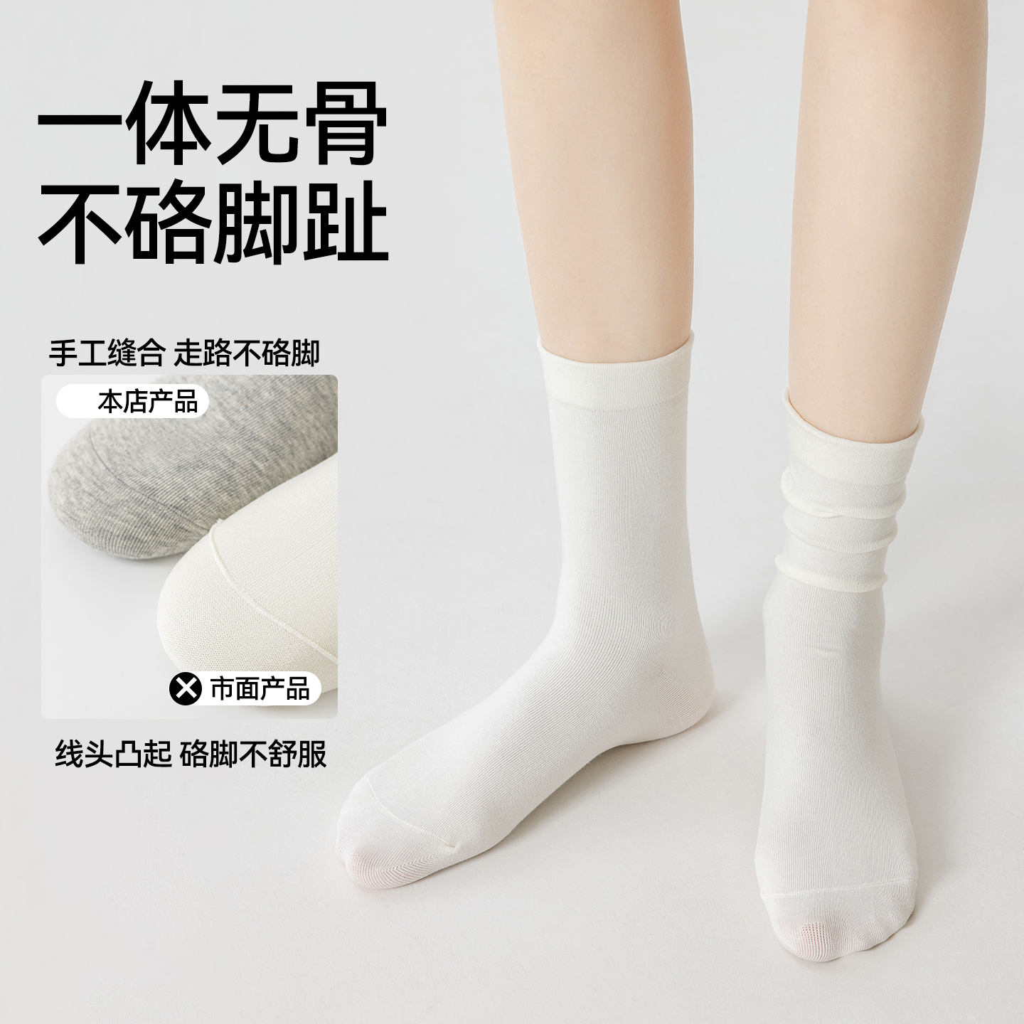 白色无骨月子长筒袜 抗菌防臭吸汗春秋款 袜子女款 纯棉中筒袜秋冬季
