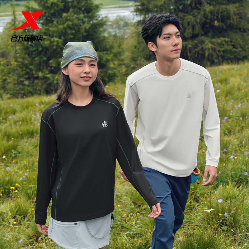 特步打底长袖 透气户外情侣运动健身跑步训练服 t恤男女2025秋新款